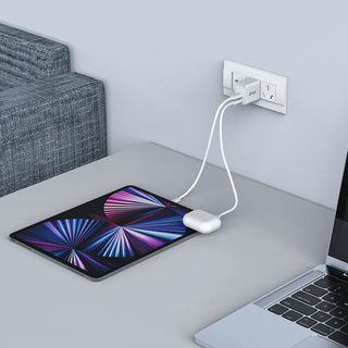 • Compact 35W Dual USB-C GaN Charger: Utilizes GaN technology to deliver a powerful 35W output from each port in a remarkably small form factor. When both ports are in use, power is allocated intelligently with 8W and 27W distribution.