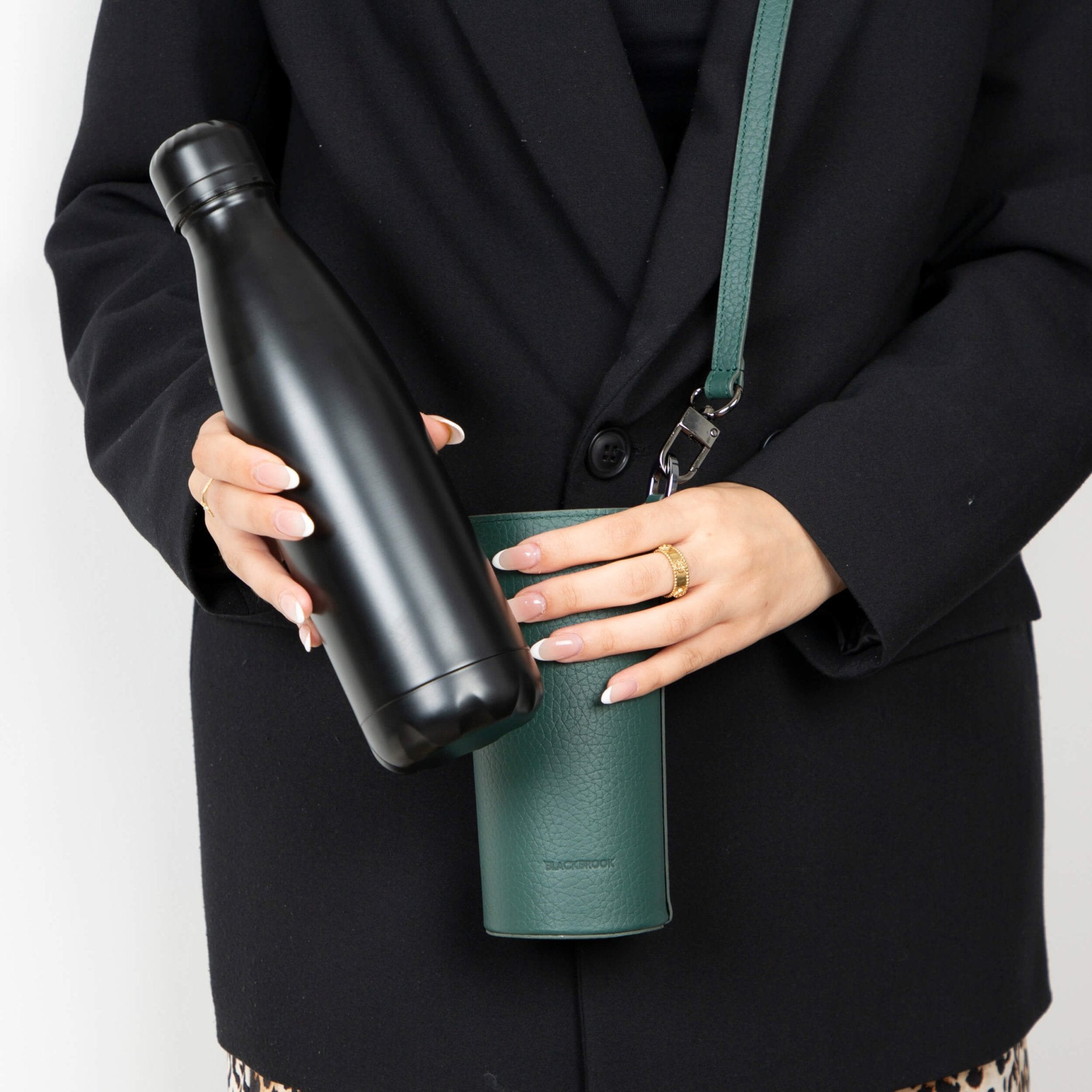 Featuring a premium 500ml stainless steel water bottle paired with a luxurious full-grain leather crossbody holder, designed for both durability and elegance