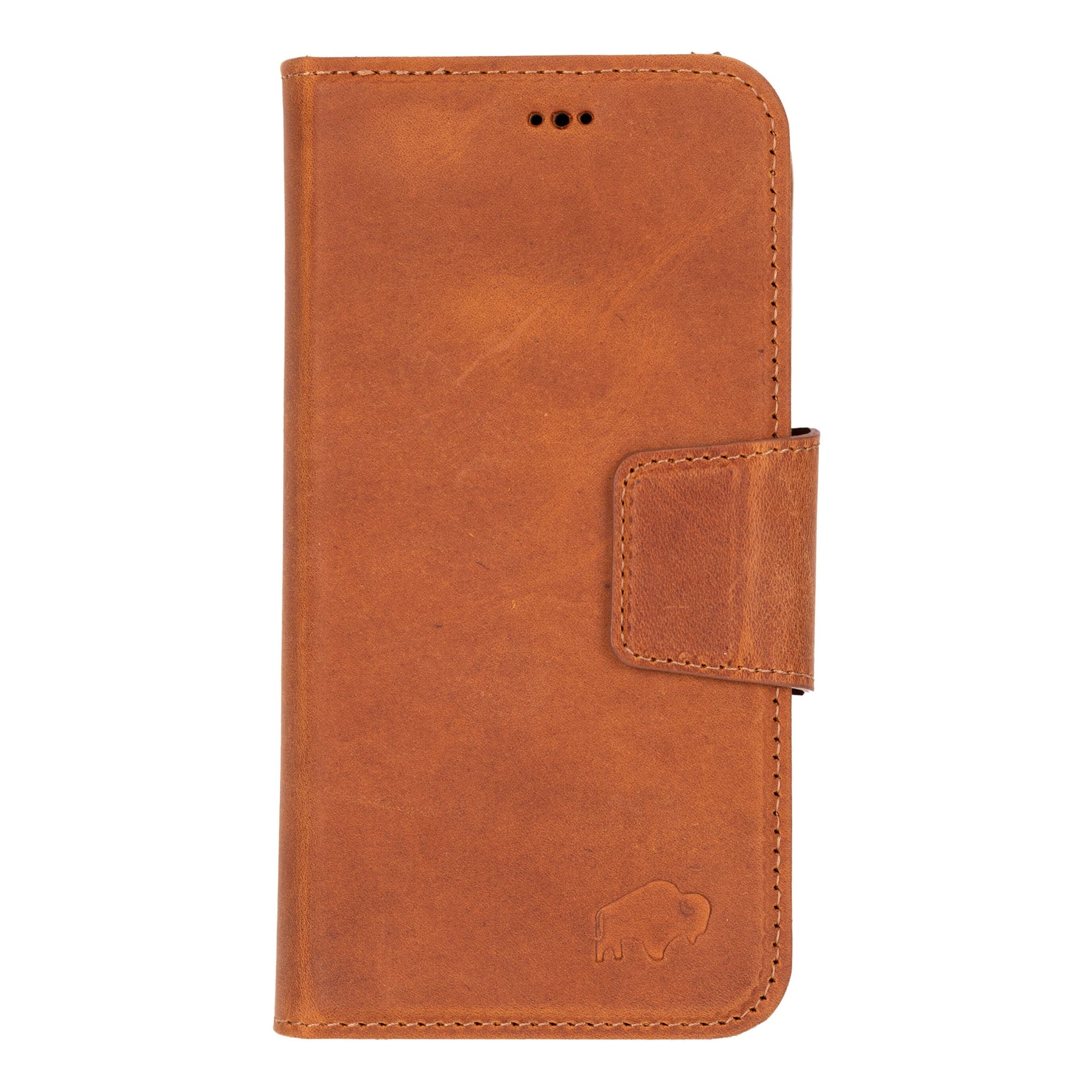Burkley and Carter models use the same wallet design, offering the same layout, card slots, and magnetic attachment. The difference is in the inner case. Burkley comes with a snap-on case fully wrapped in leather, featuring open sides for easy access to buttons and charging. Carter, on the other hand, includes a snap-on case made from shockproof TPU that covers all sides of the phone.
