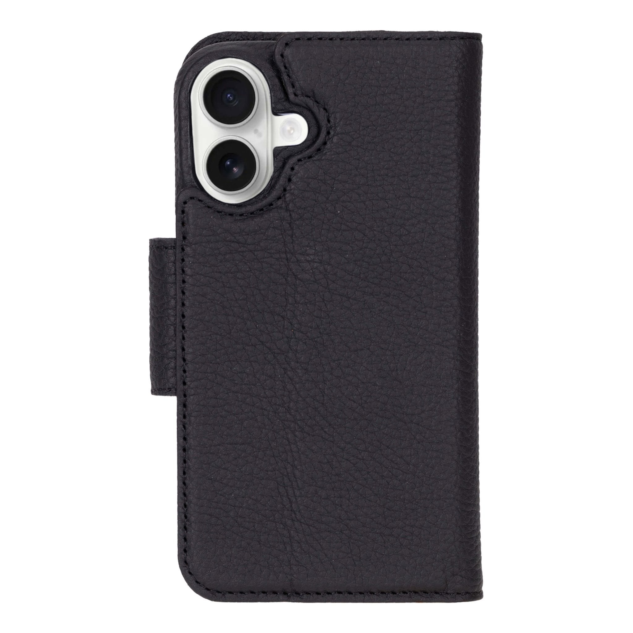 2-in-1 full-grain leather wallet case for iPhone 16 with a detachable snap-on phone case. Designed for everyday carry with built-in card storage and screen protection.
