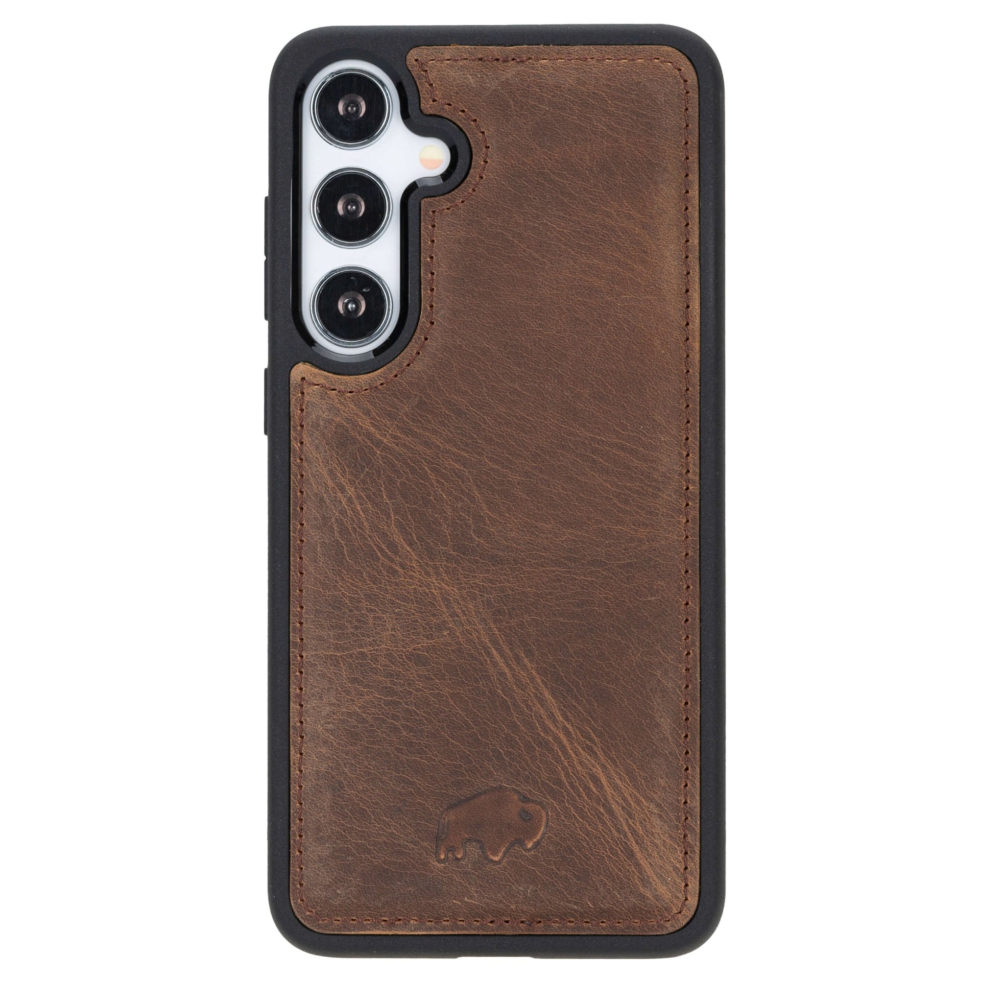 Slim snap-on leather case with a clean design and protective frame for Samsung S25 Plus. Full-grain leather exterior and a lightweight feel for daily use.