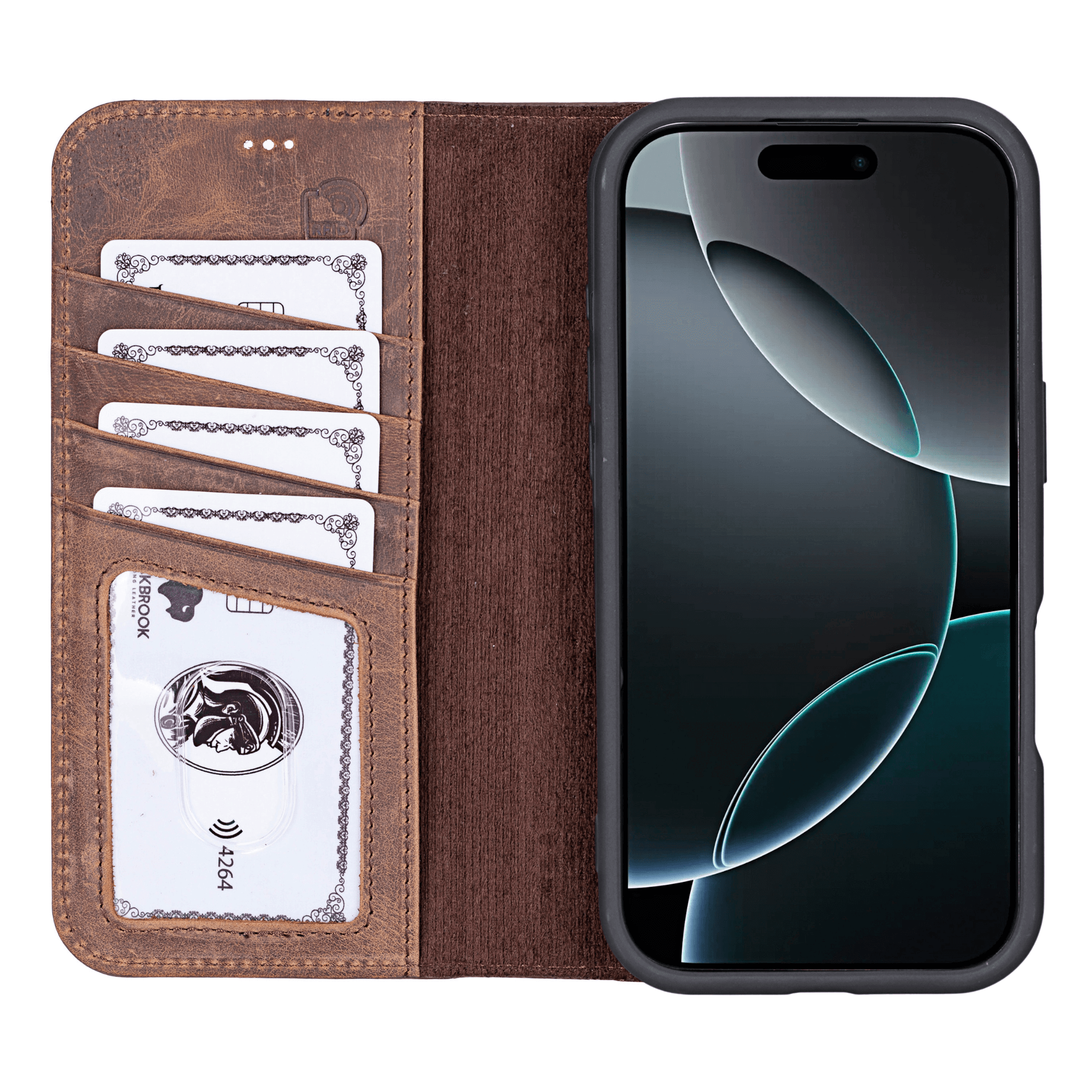 Carter iPhone 16 Pro Wallet Case, Distressed Coffee - BlackBrook Case