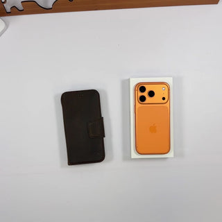 A handcrafted 2-in-1 wallet folio made from full-grain leather. Secure snap-on phone case pairs with a magnetic card holder for everyday carry. Built for protection, designed for convenience.