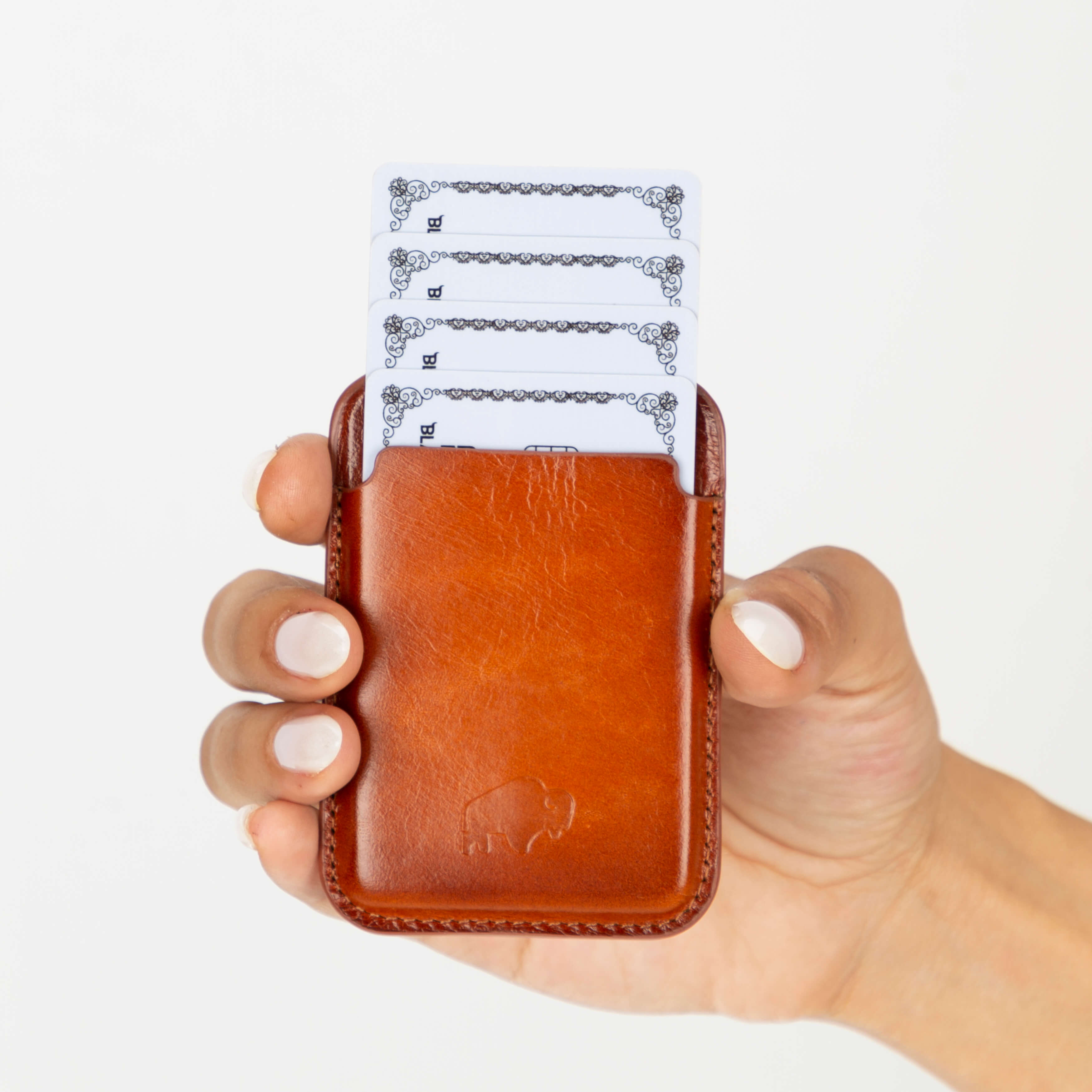 Snap on everyday essentials with this slim, full-grain leather MagSafe wallet built for style and convenience.