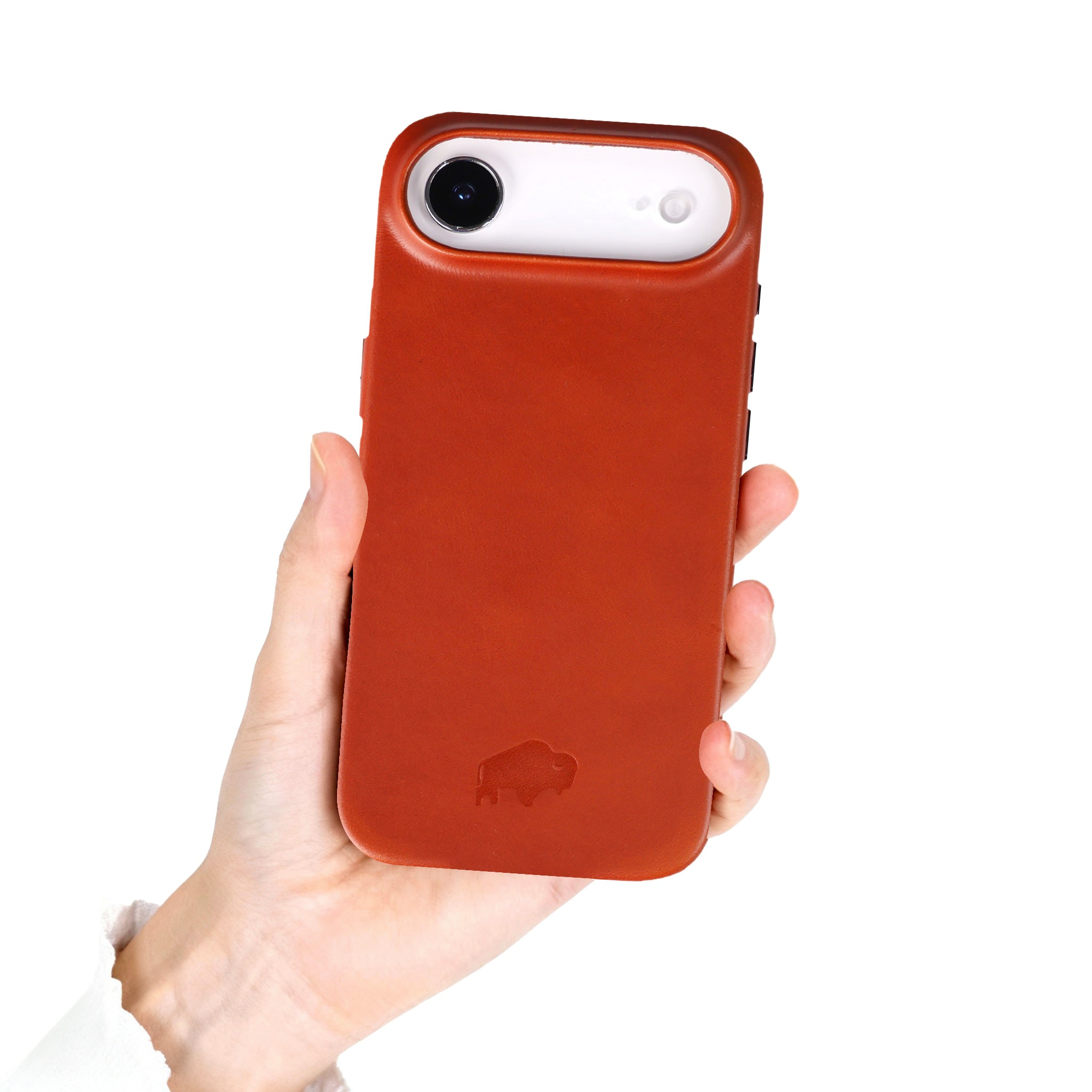 Meticulously crafted iPhone Air case for style, durability, and all-around protection, featuring premium full-grain leather, a soft microfiber interior, and convenient functionality like MagSafe compatibility and camera capture button.
