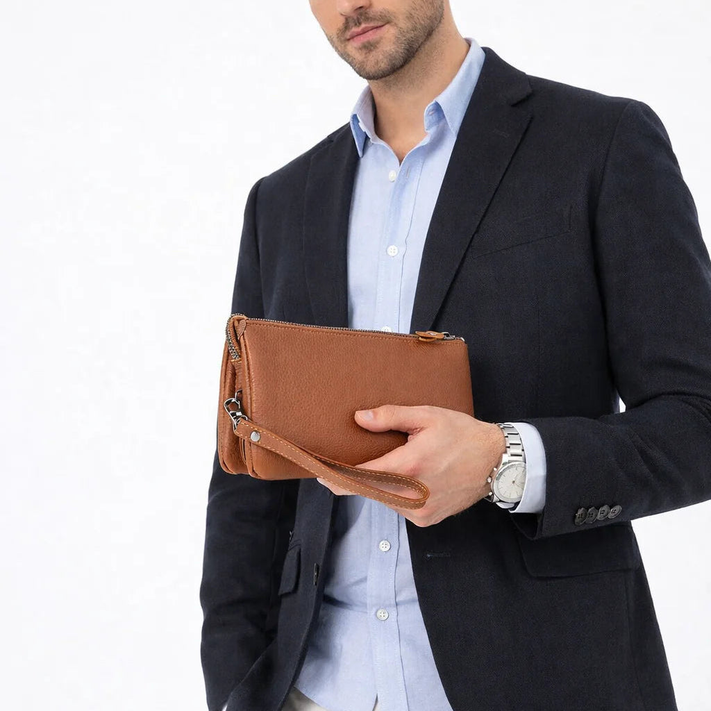 A slim cowhide handheld pouch handcrafted for men who carry with intention.