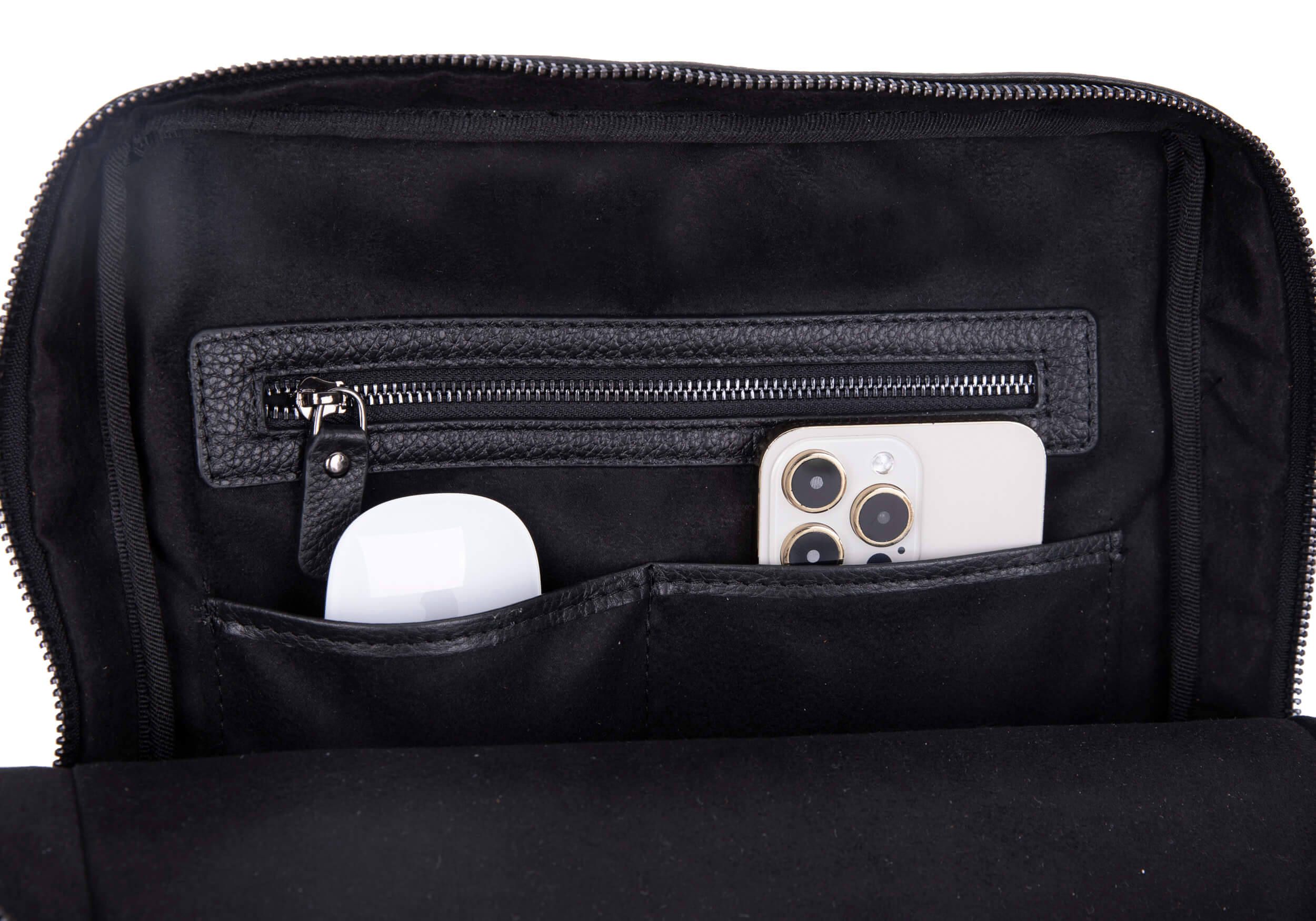 Roomy compartment with pockets for everyday items. Simple, functional layout.