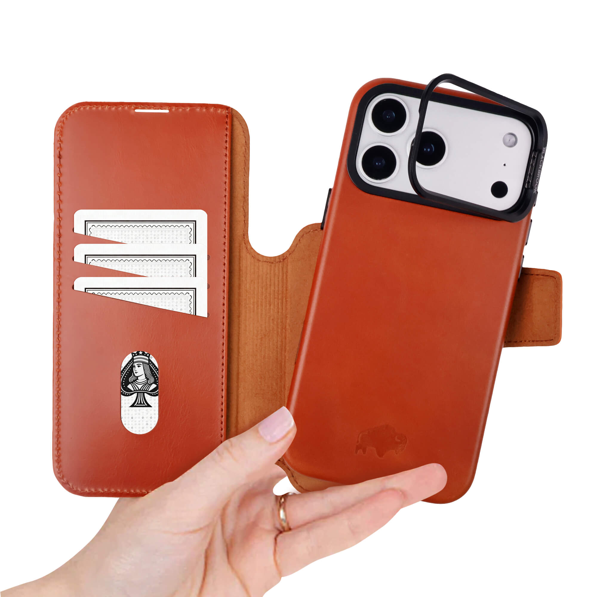 A handcrafted 2-in-1 wallet folio made for iPhone 17 Pro from full-grain leather. Secure snap-on phone case pairs with a magnetic card holder for everyday carry. Built for protection, designed for convenience.