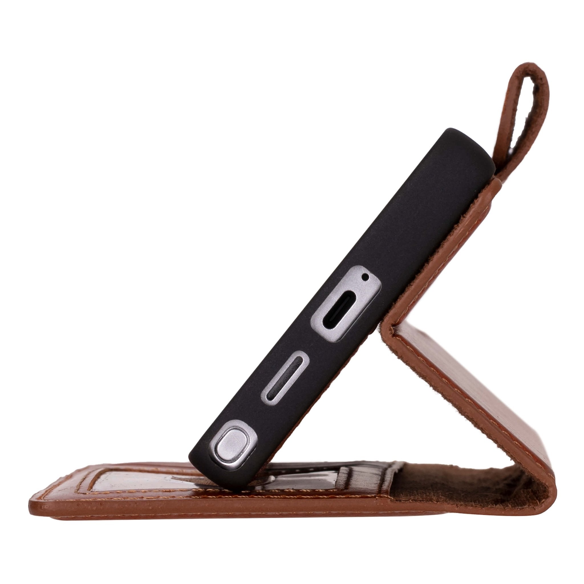 Crafted from full-grain leather with a burnished tan finish that develops character and patina over time.
