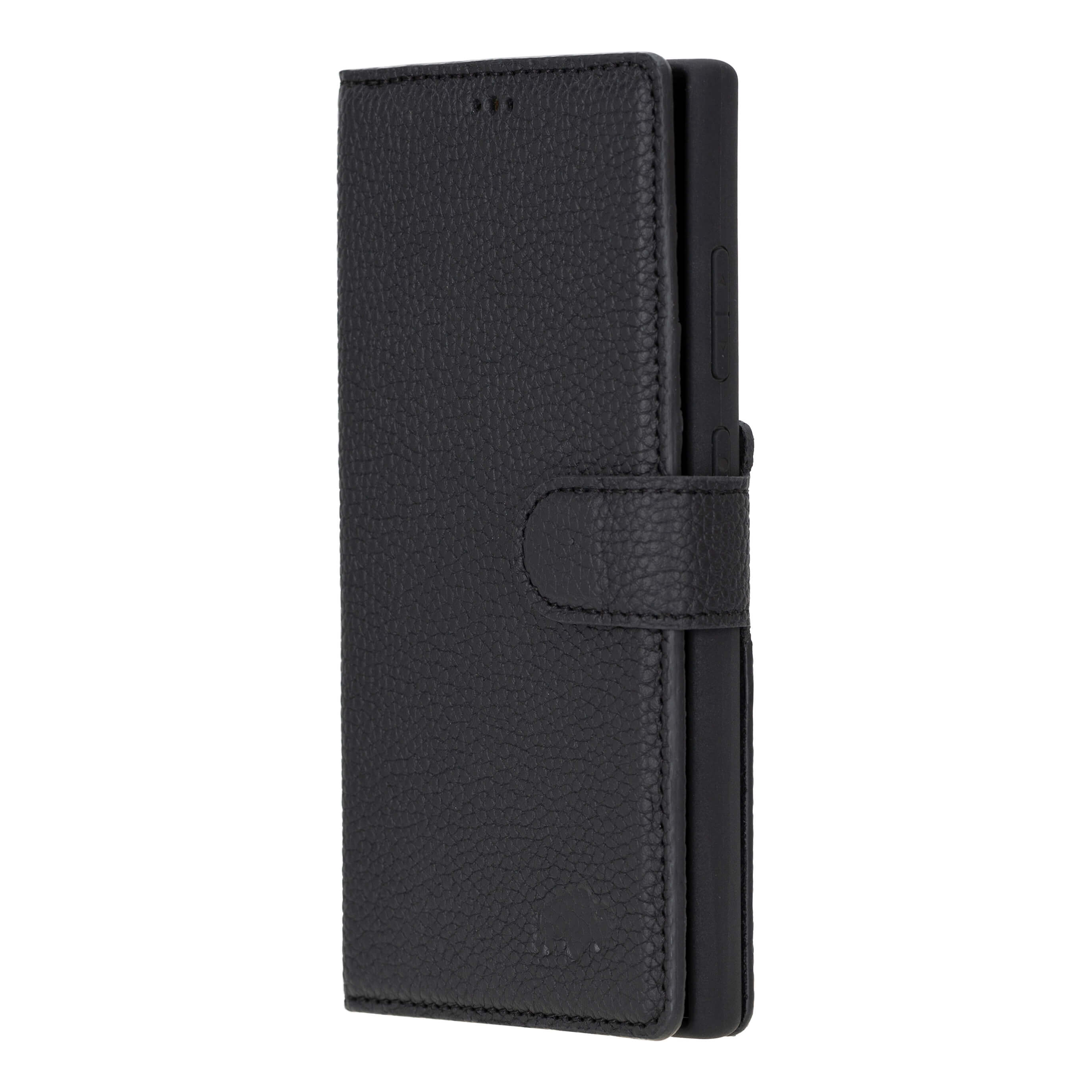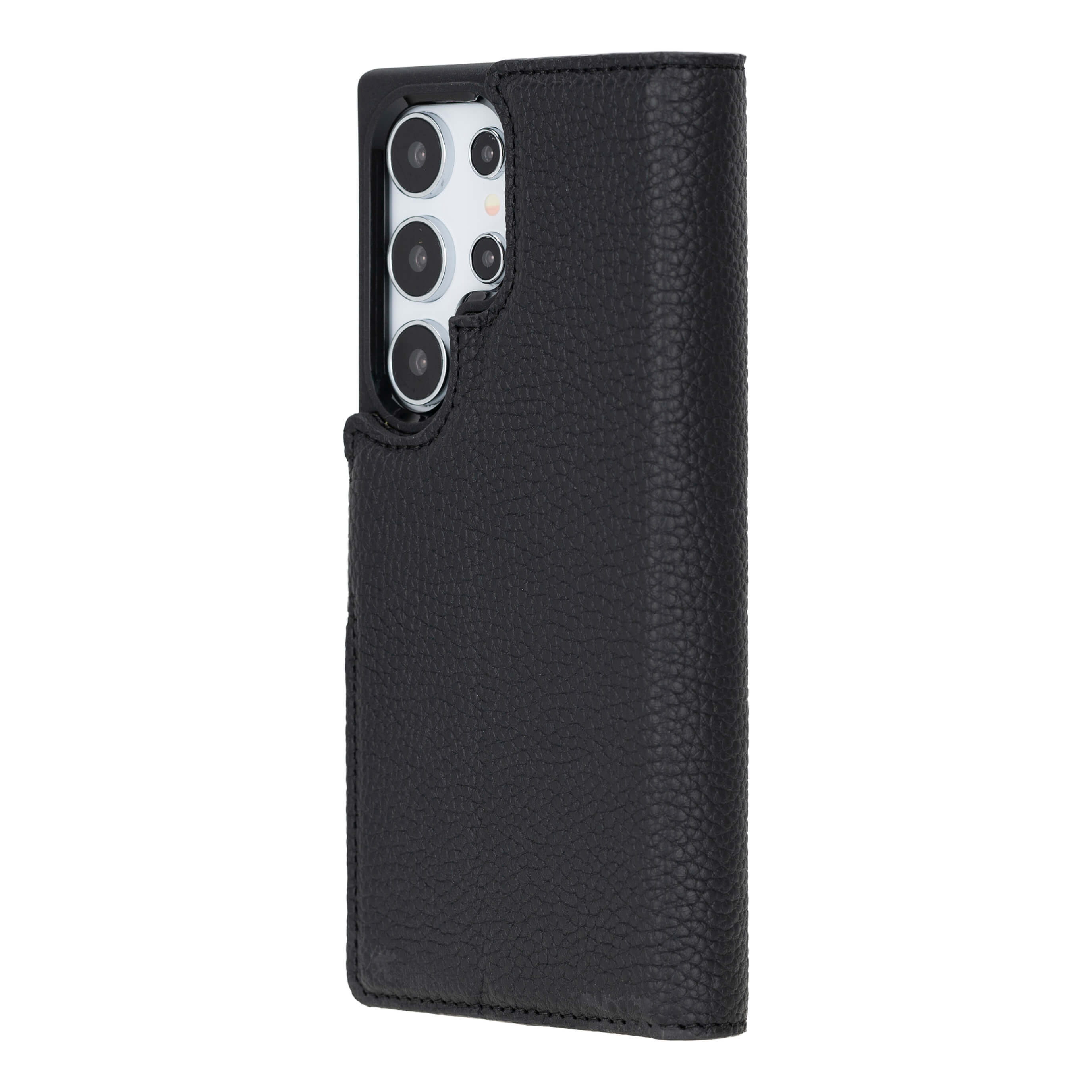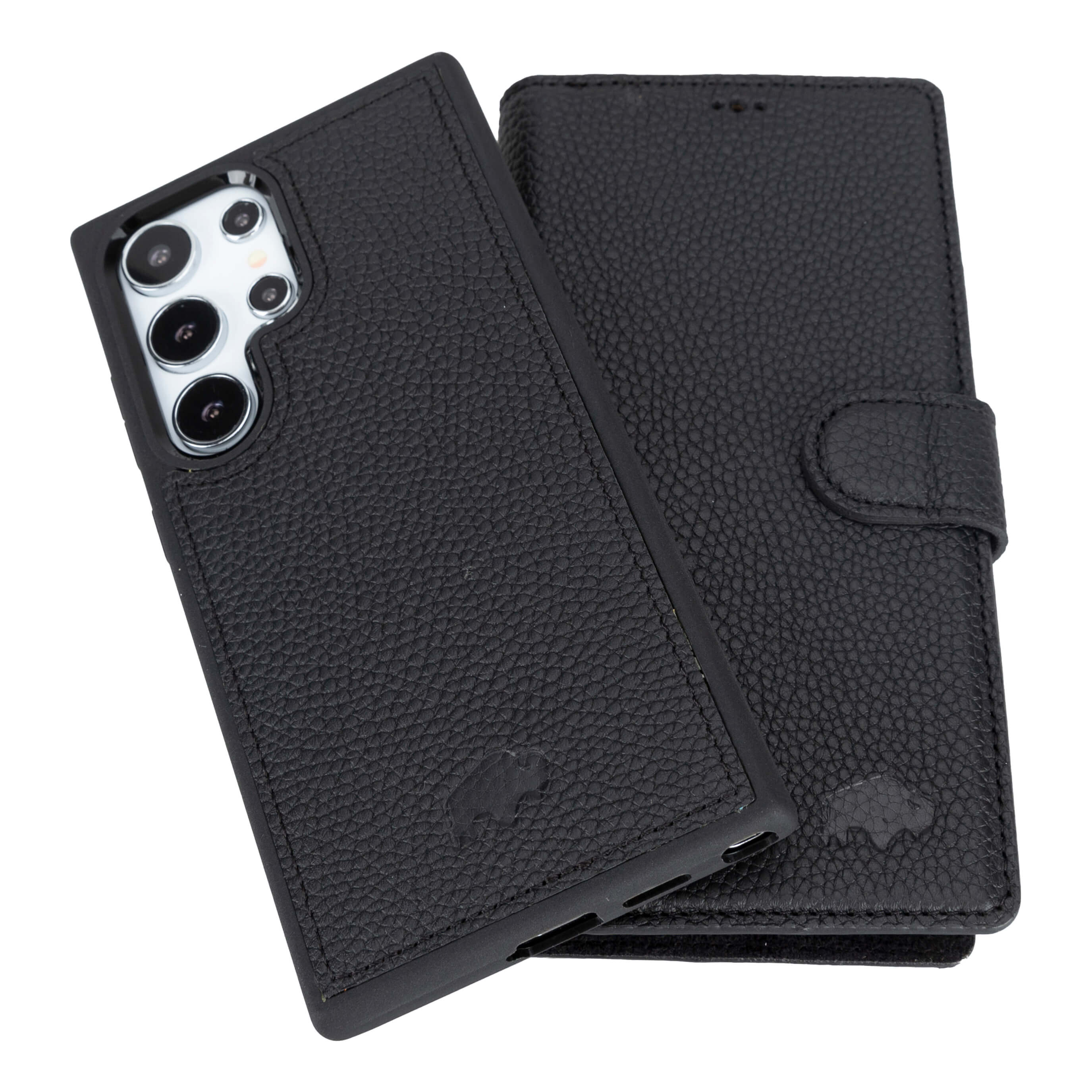 2-in-1 detachable leather wallet case built for Samsung Galaxy S24 Ultra. Full-grain leather, secure card storage, and a slim protective inner case.