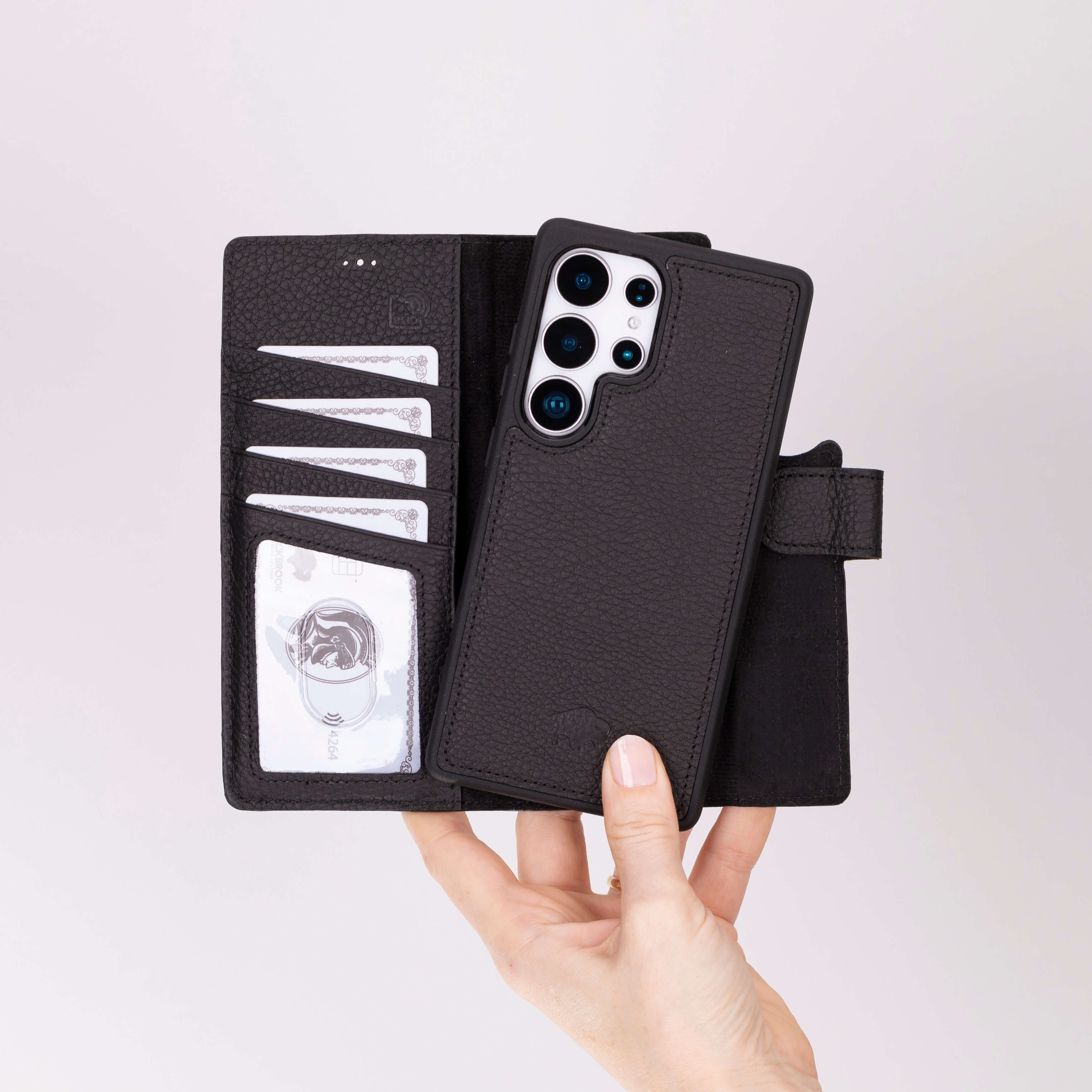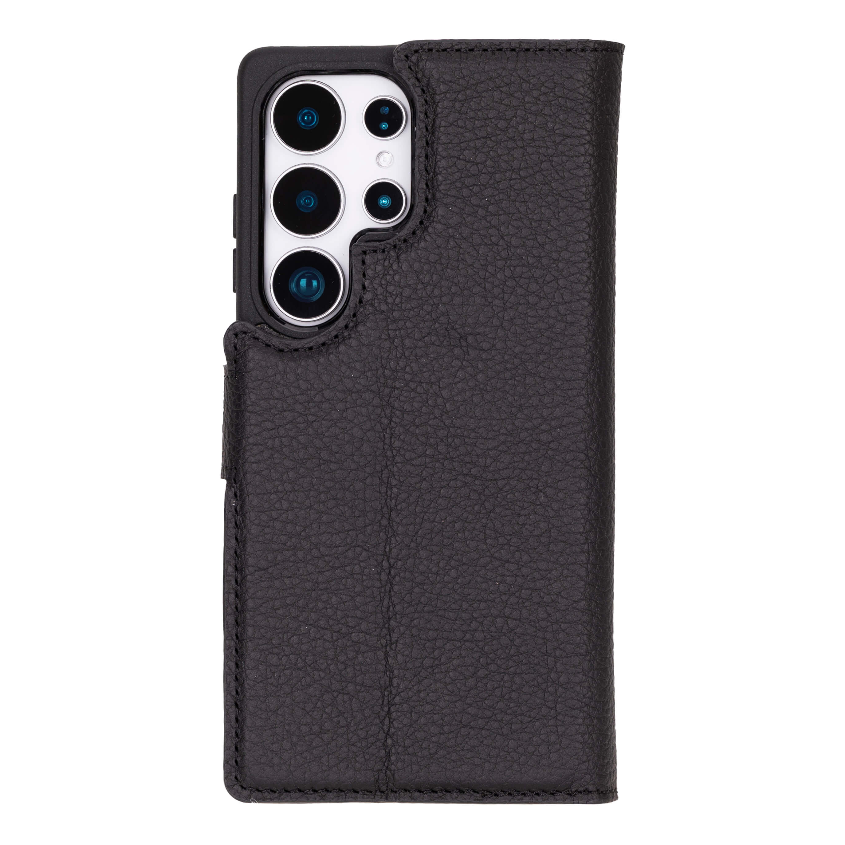 2-in-1 detachable leather wallet case built for Samsung Galaxy S25 Ultra. Full-grain leather, secure card storage, and a slim protective inner case.
