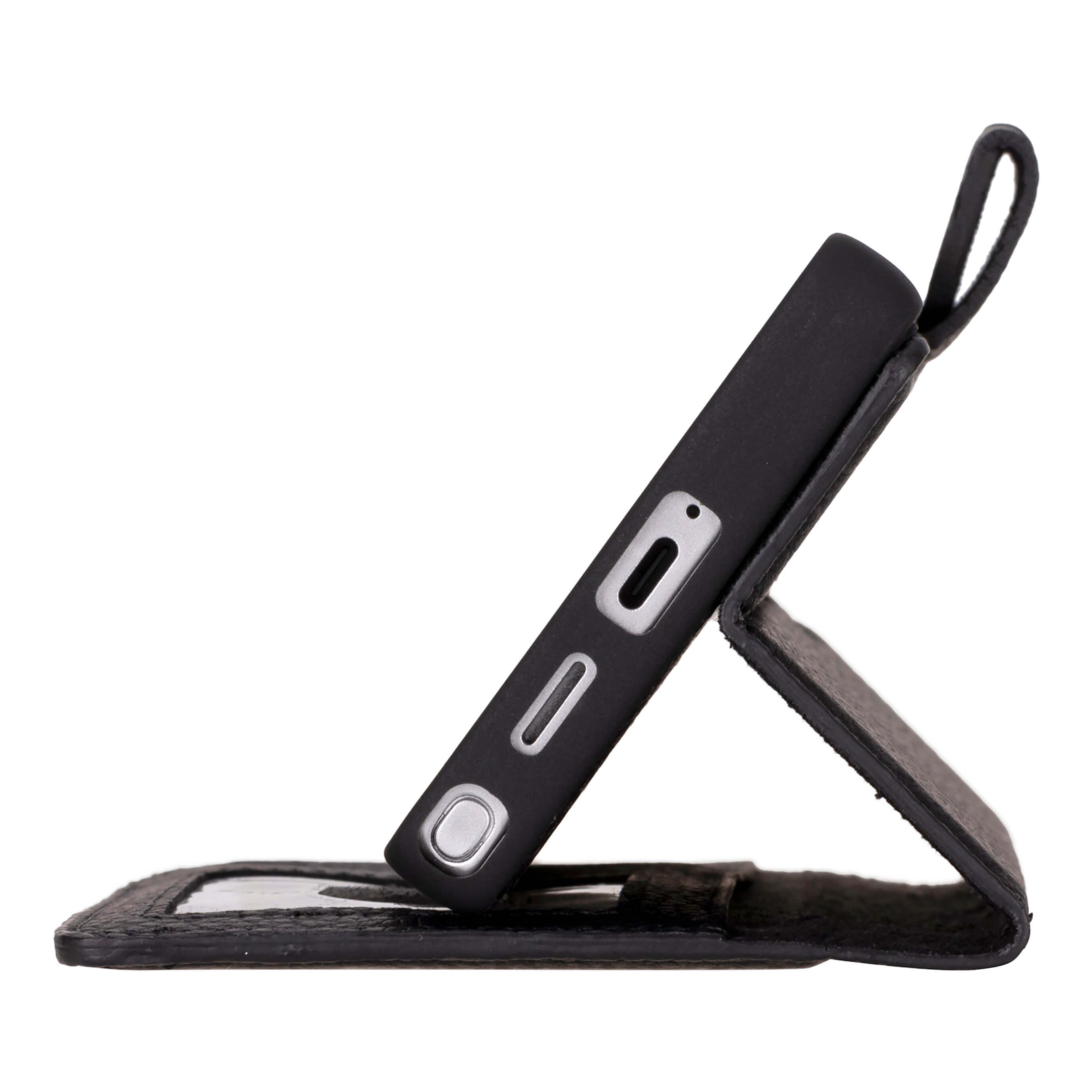 A magnetic detachment makes it easy to switch between a full leather wallet and a slim protective phone case.