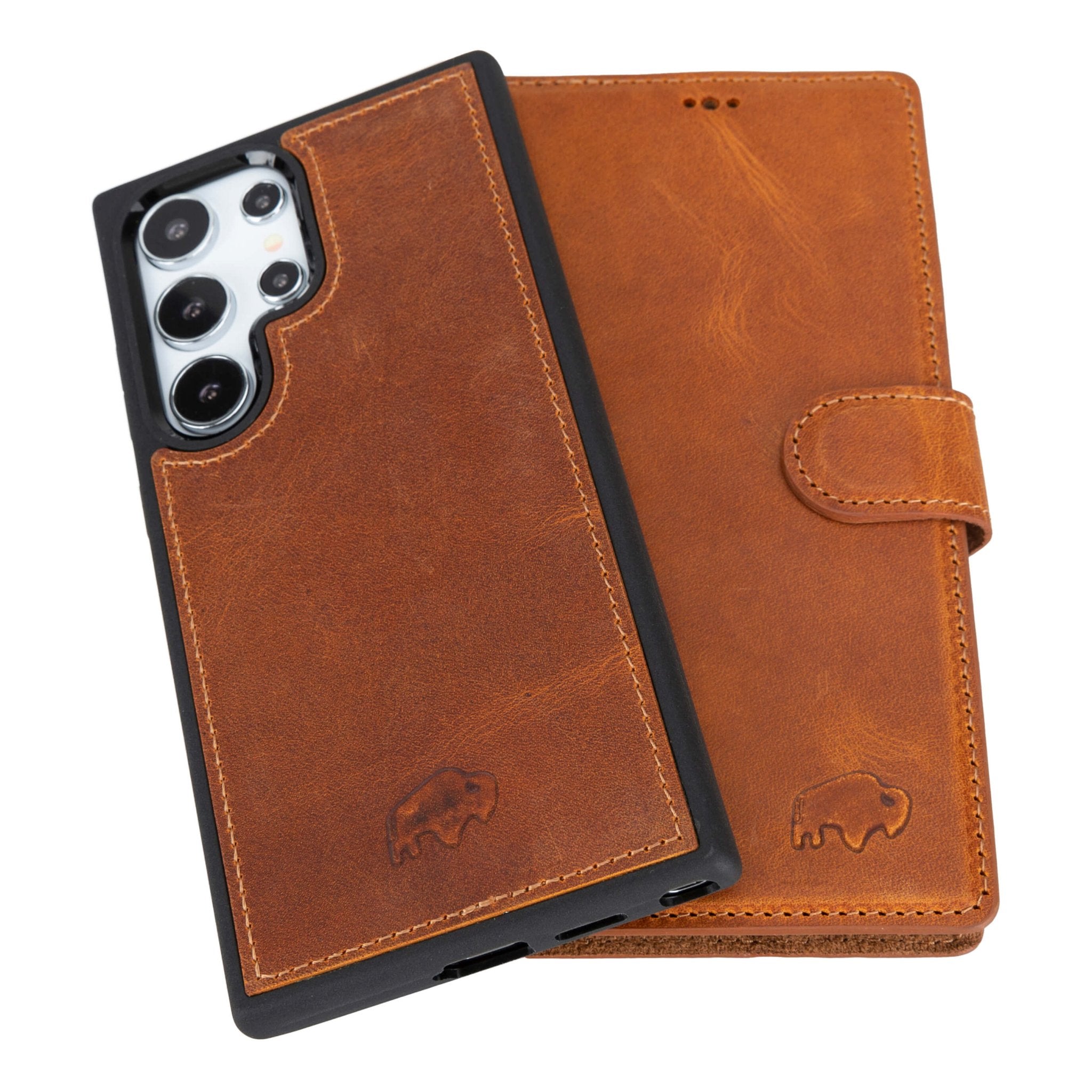 2-in-1 detachable leather wallet case with a slim snap-on phone case for Samsung Galaxy S24 Ultra. Designed to keep your phone and daily essentials together in one setup.