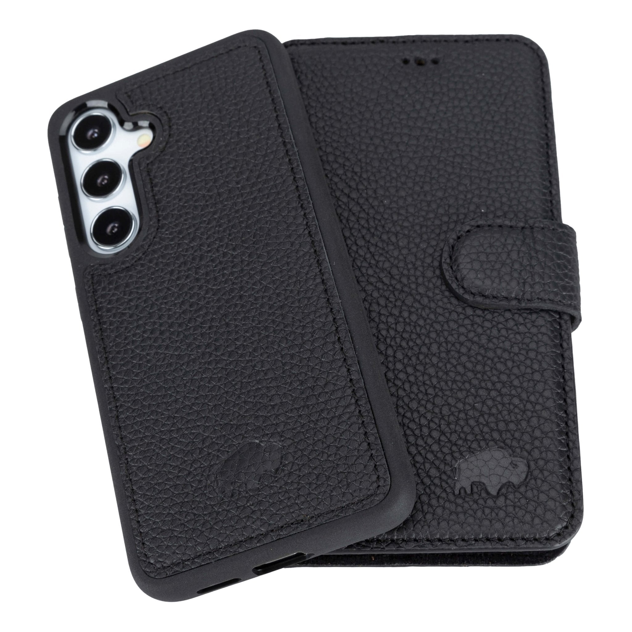 2-in-1 detachable leather wallet case built for Samsung Galaxy S25. Full-grain leather, secure card storage, and a slim protective inner case.