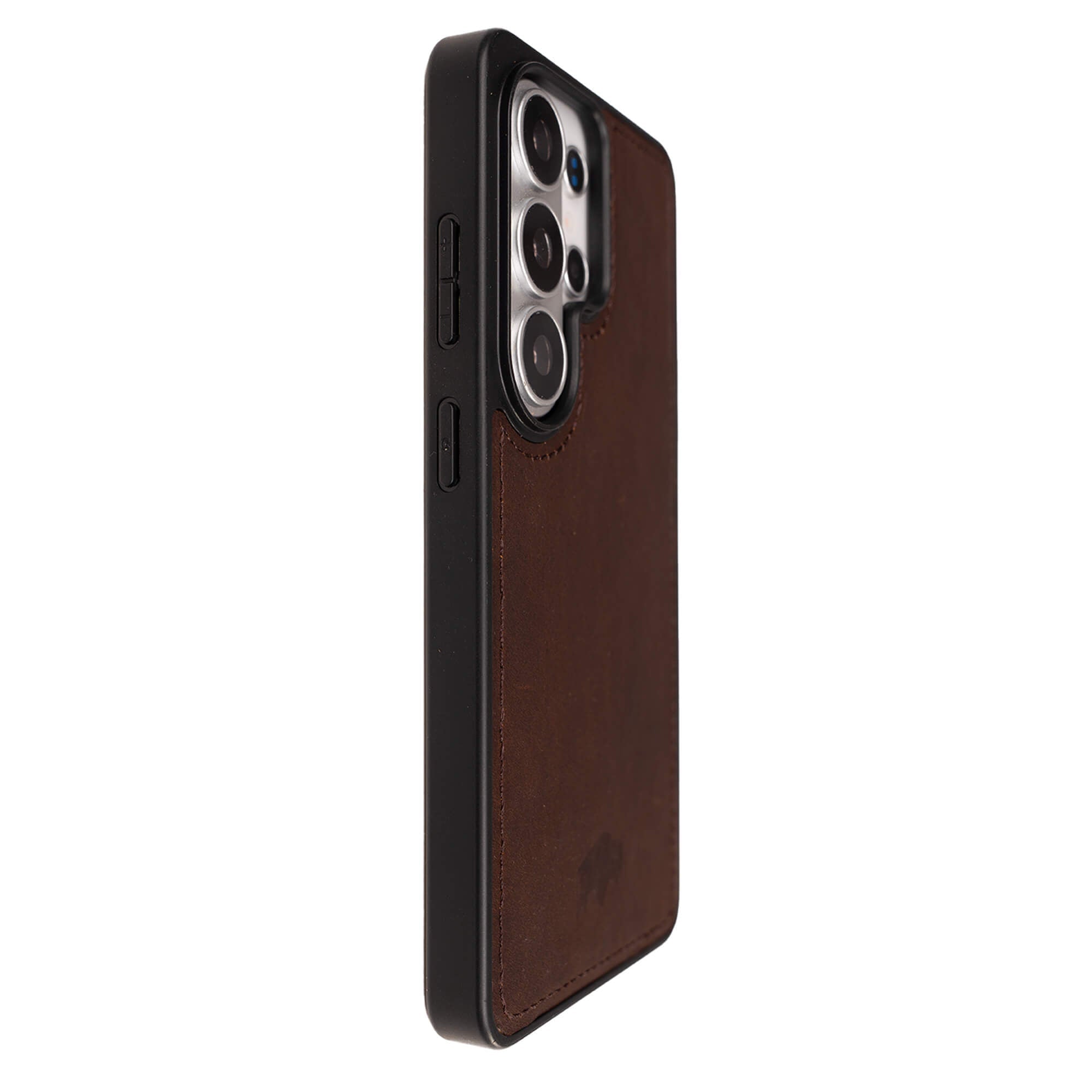 Slim snap-on leather case with a clean design and protective frame for Samsung S26 Ultra. Full-grain leather exterior and a lightweight feel for daily use.