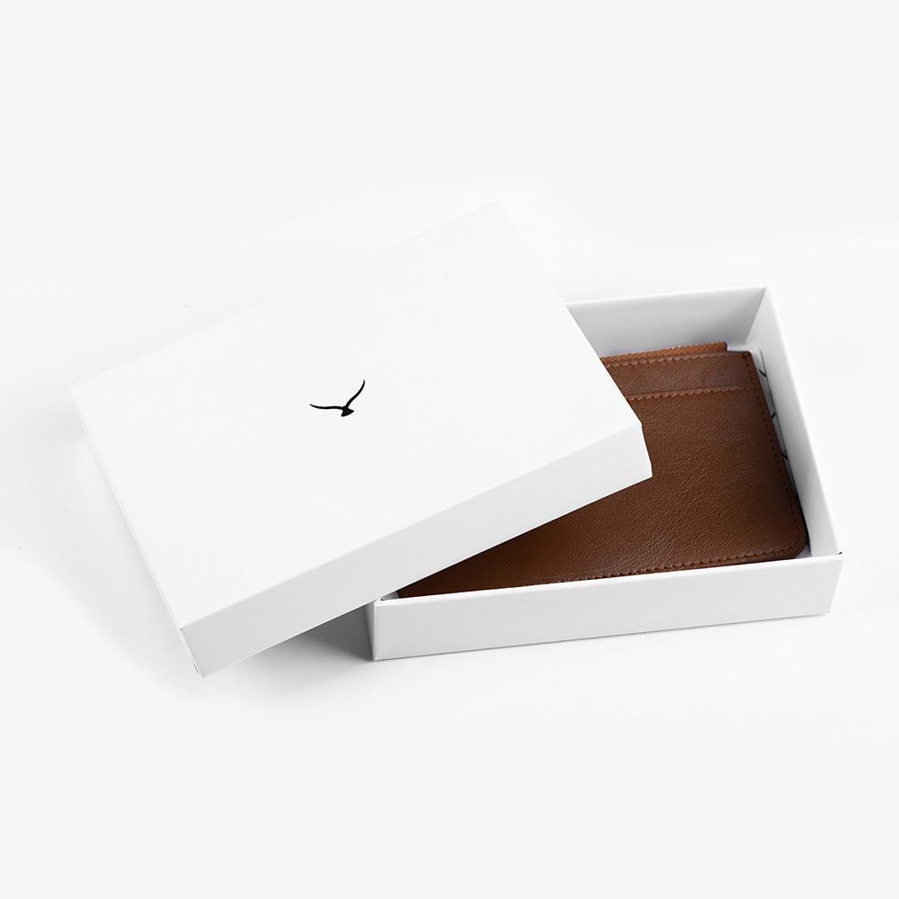 Minimal card holder with three card slots, ID window, and slim silhouette.