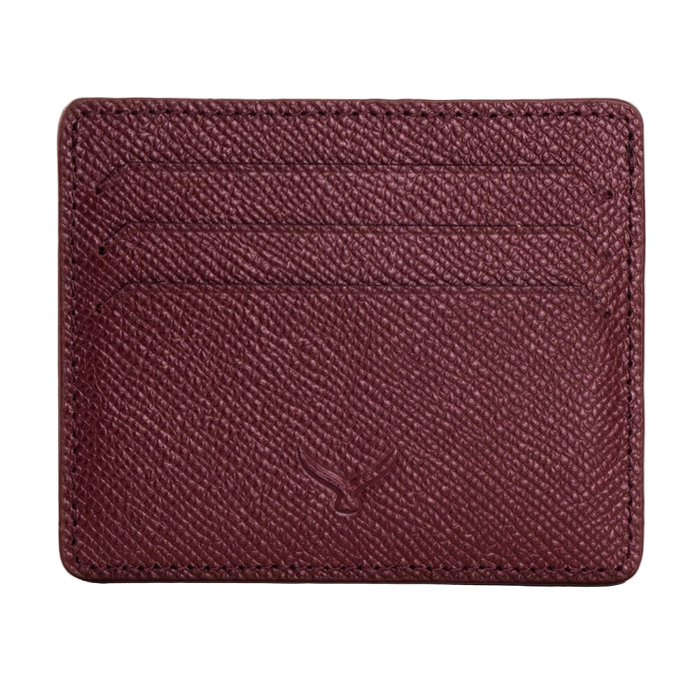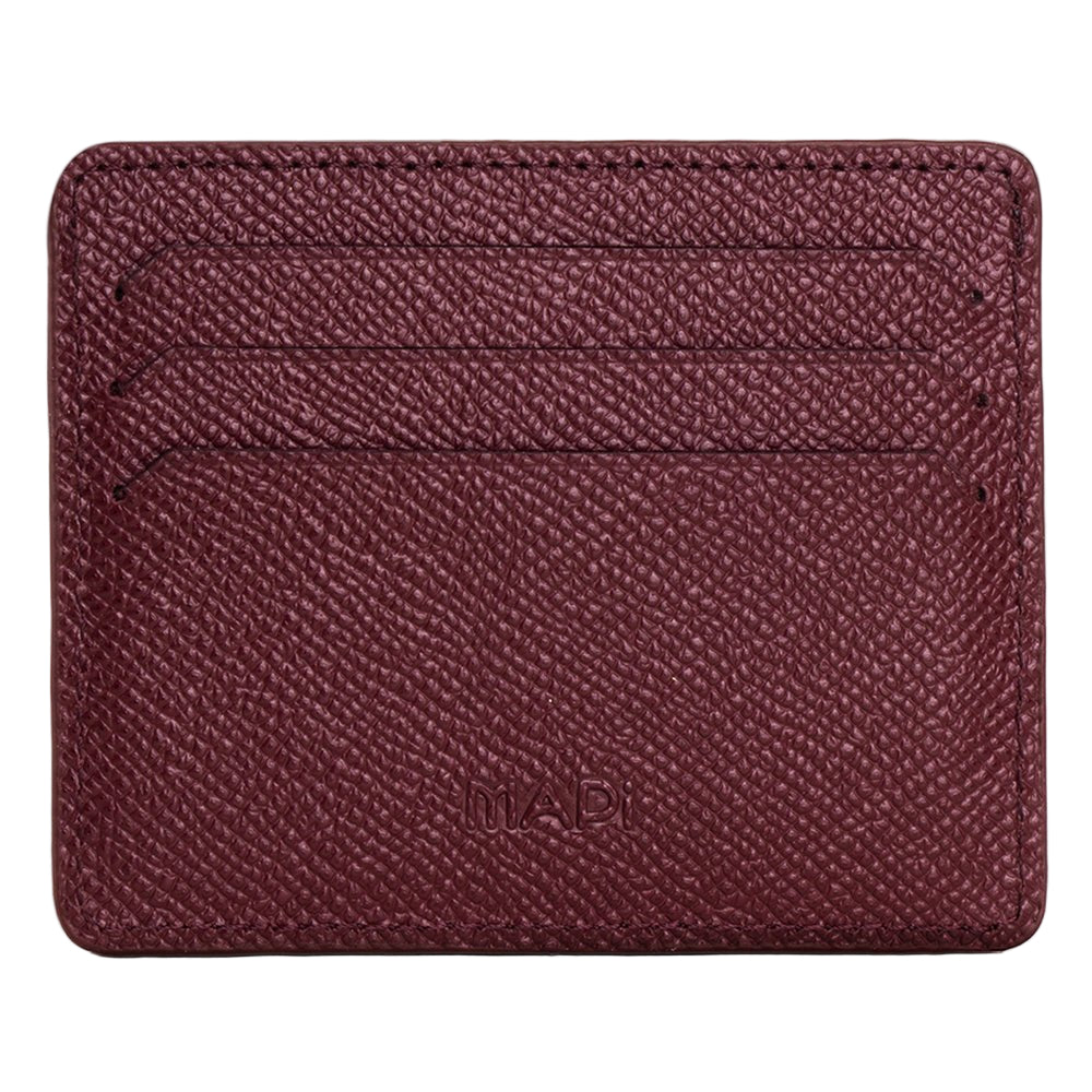 Hand-made slim leather card holder with four rounded slots and a bill compartment.