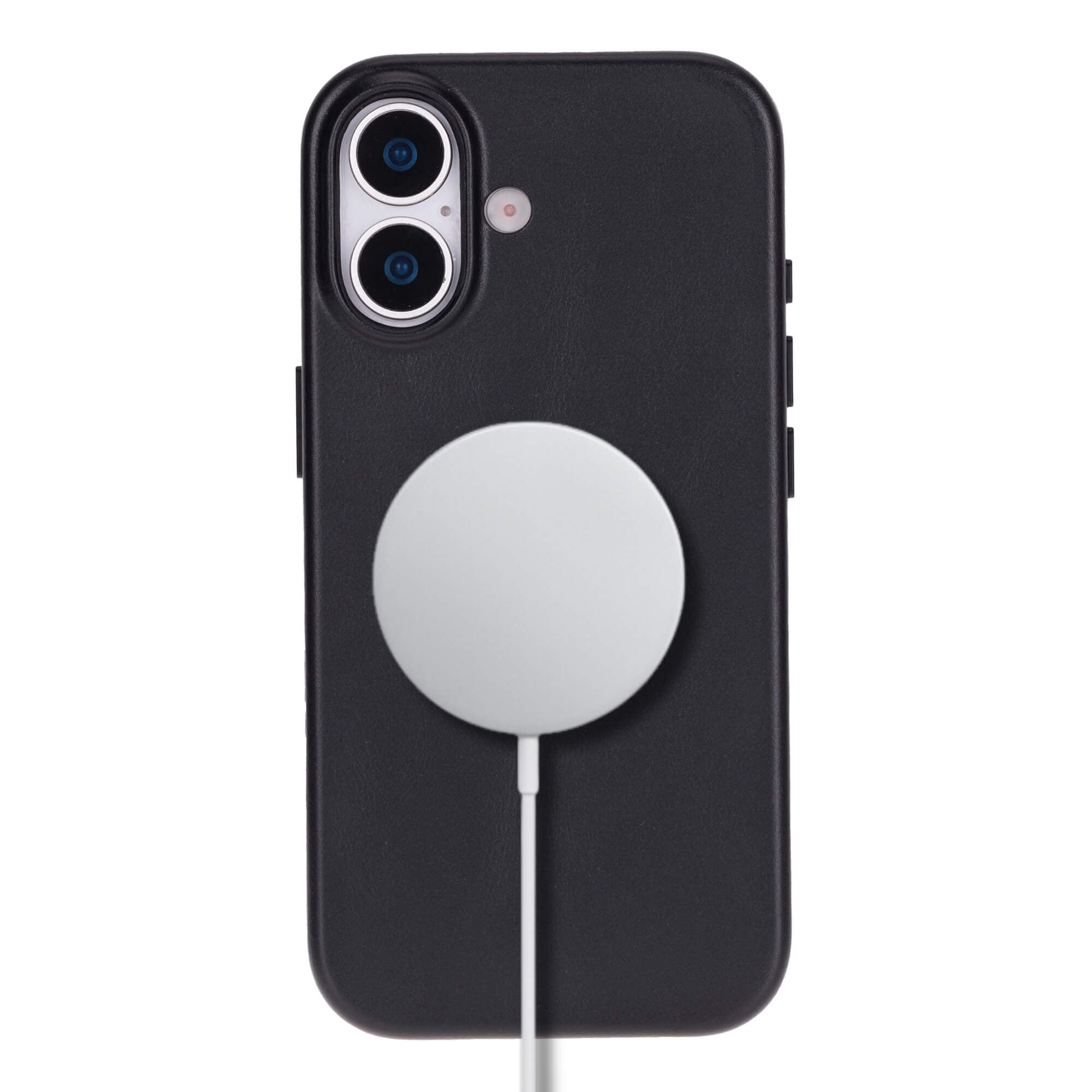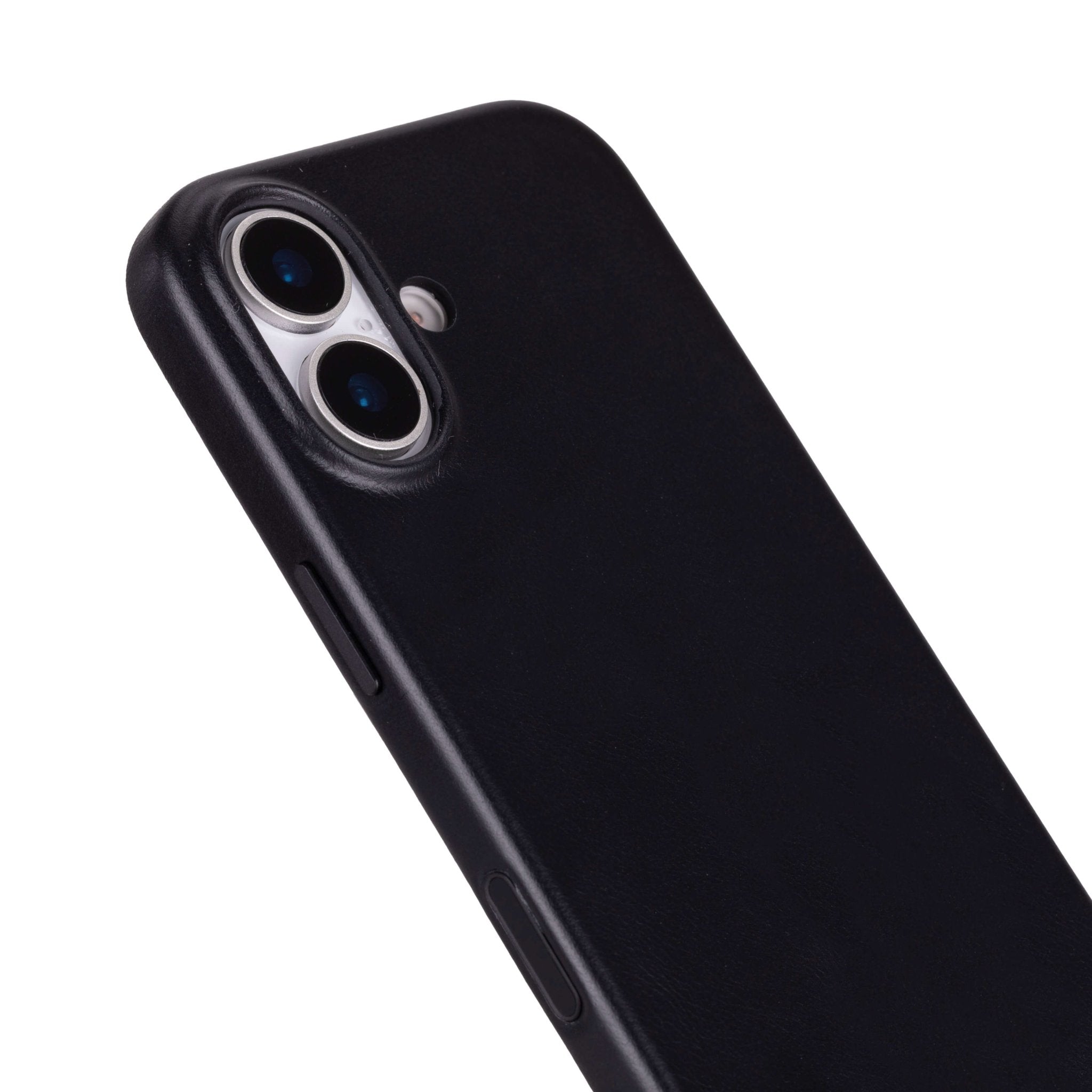 Full-grain leather MagSafe case for iPhone 17 with reinforced protection and a soft microfiber interior and camera capture button. Designed for everyday use with secure grip and precise access.