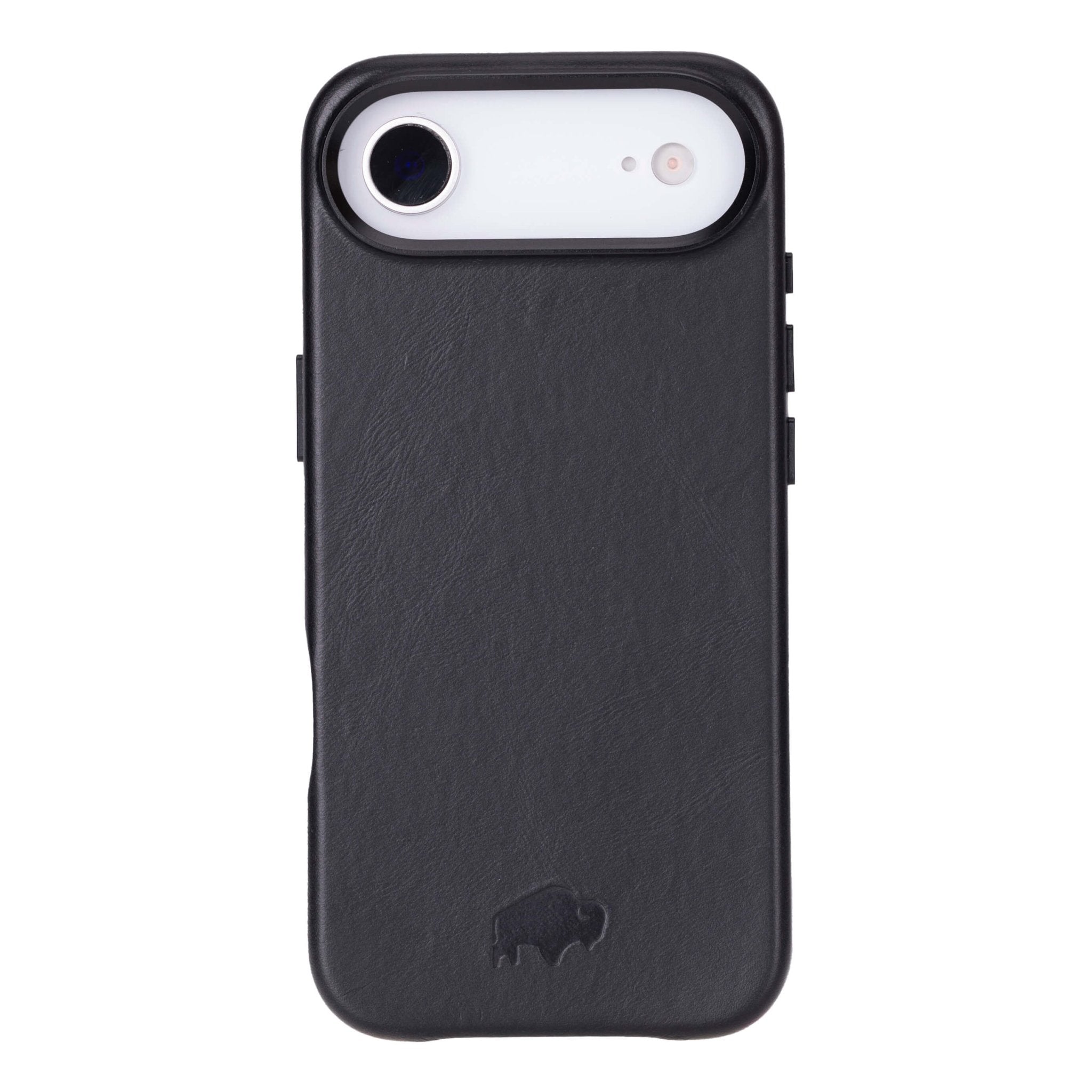Slim snap-on leather case for iPhone Air with reinforced edges and a metal camera ring. Designed for everyday protection with full side coverage.