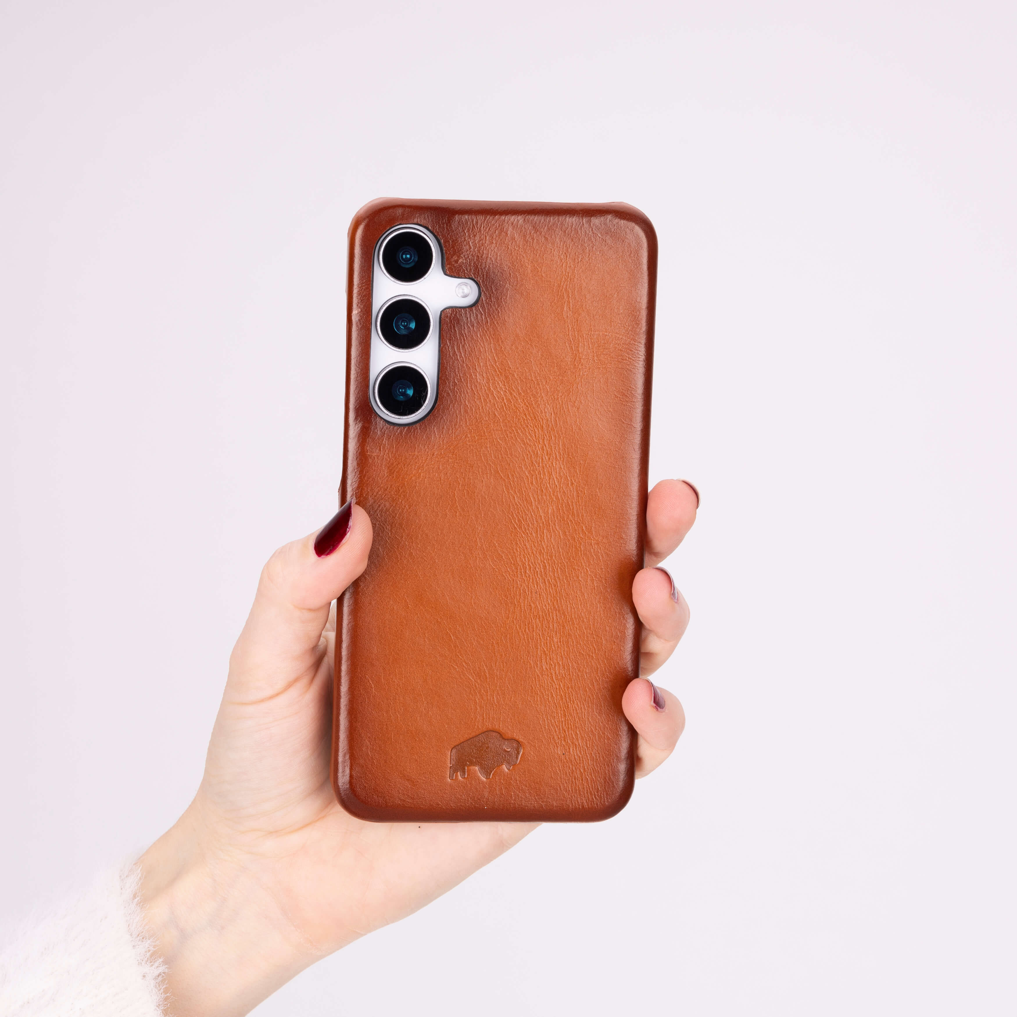 Slim snap-on leather case for Samsung S25, crafted from full-grain leather. Lightweight build, soft interior, and solid everyday protection.