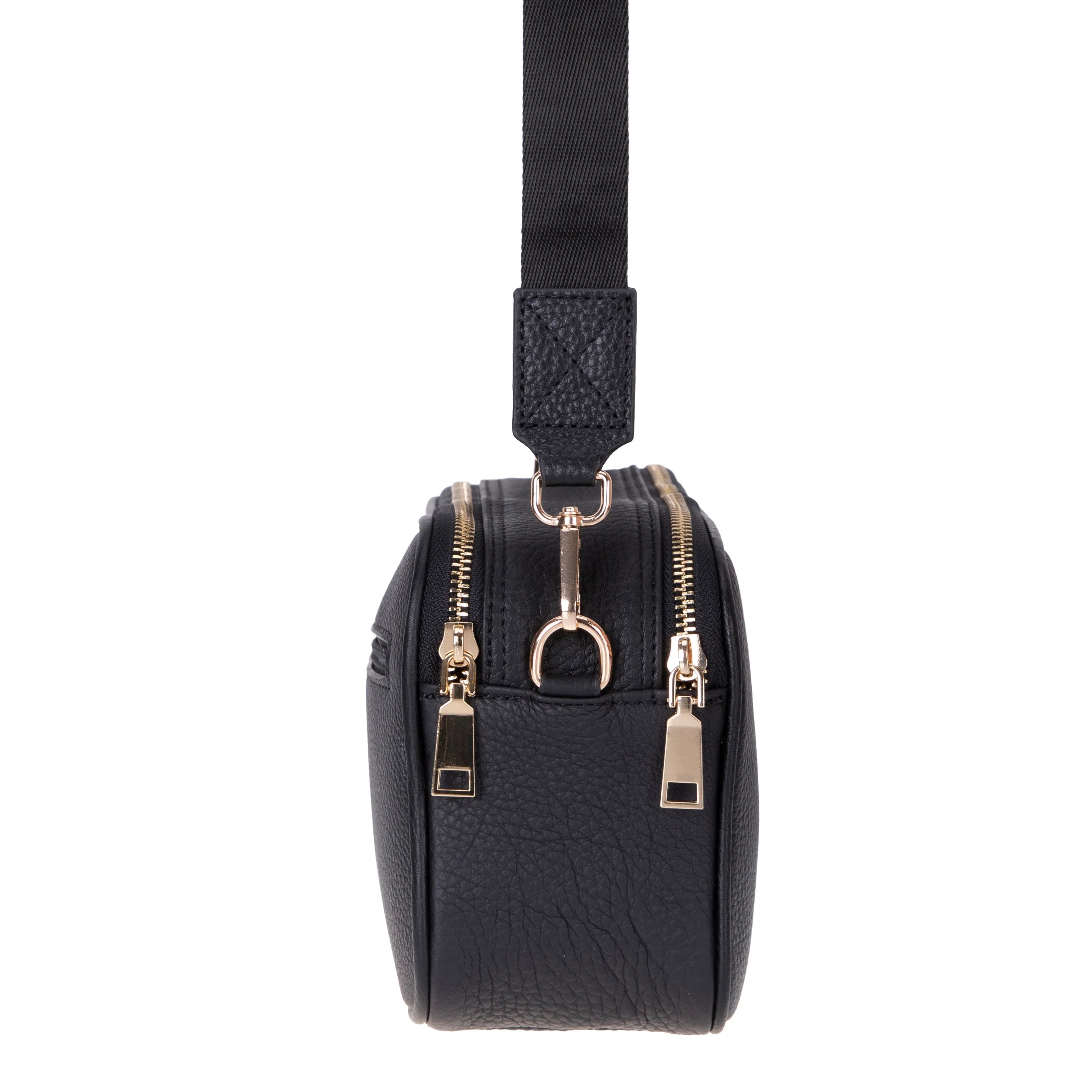 A lightweight floater leather shoulder bag sized for essentials, nothing more.
