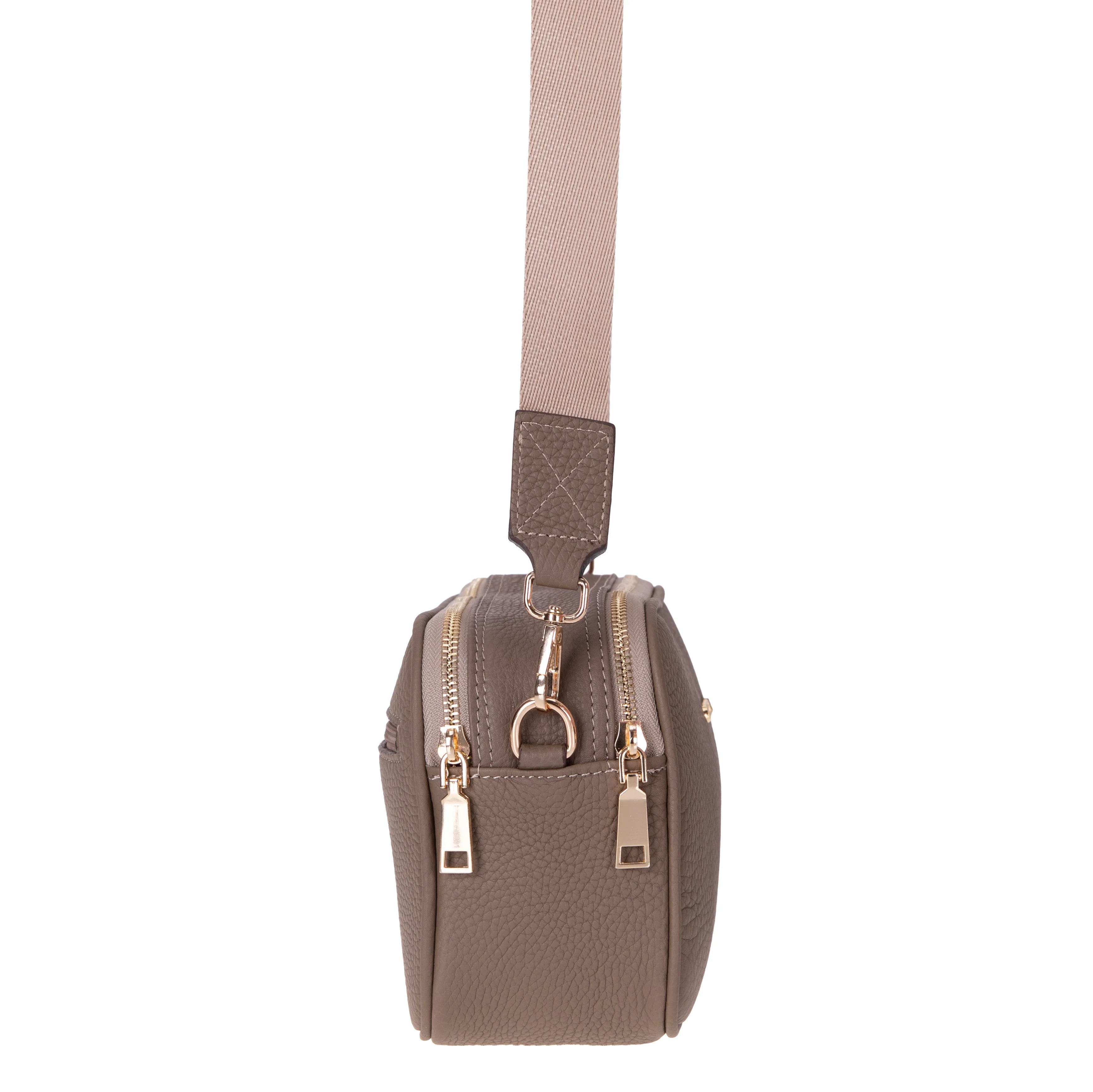 A lightweight floater leather shoulder bag sized for essentials, nothing more.