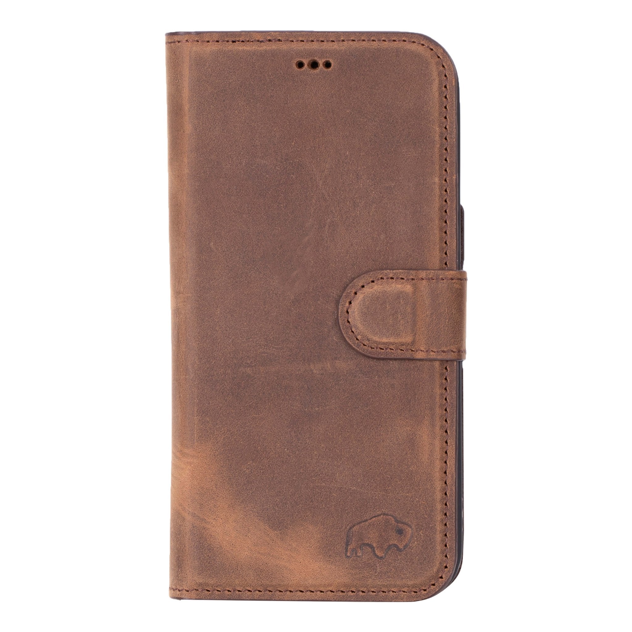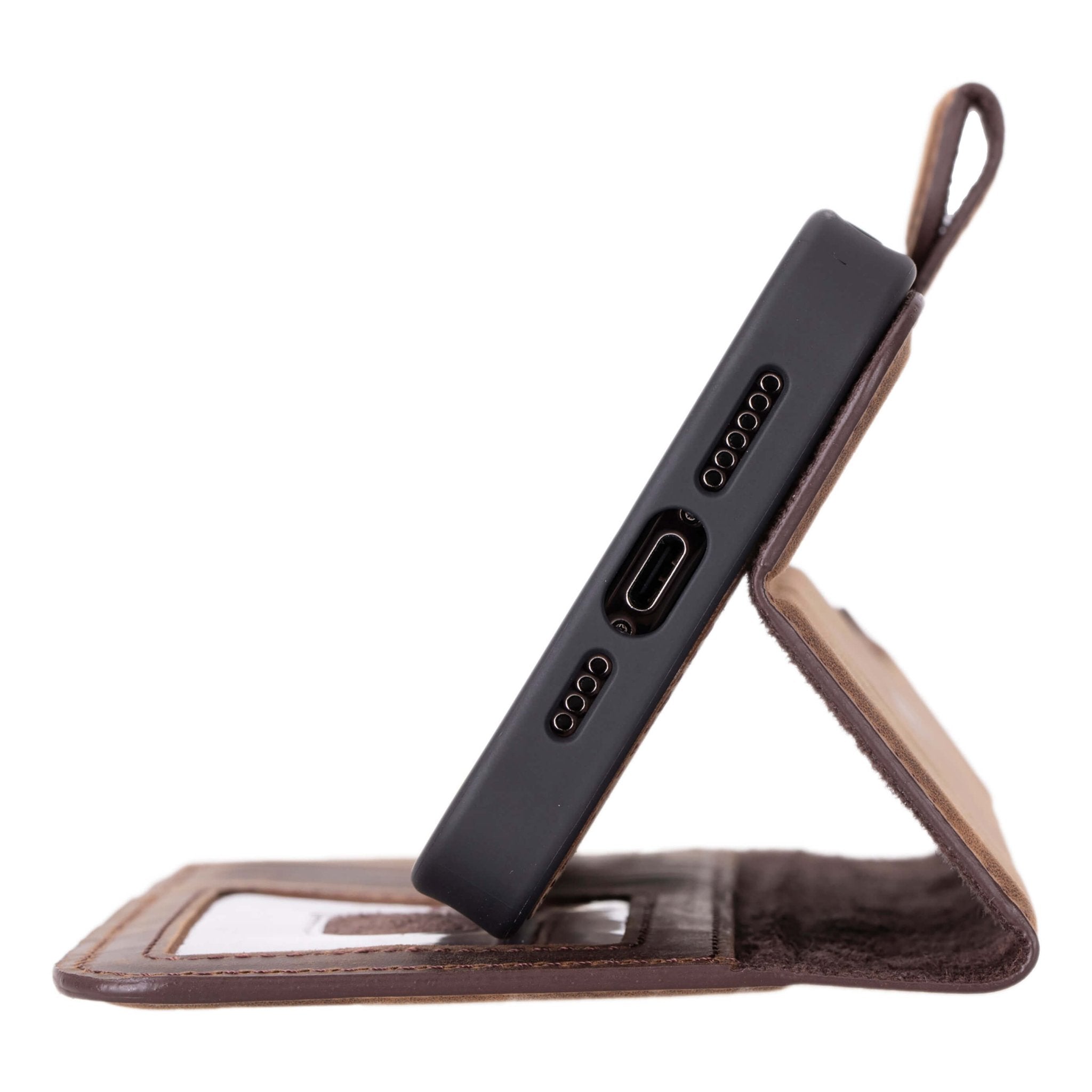 2-in-1 detachable leather wallet case for iPhone 15 Pro with a hybrid snap-on phone case. Designed with reinforced TPU sides for added drop protection and everyday carry convenience.