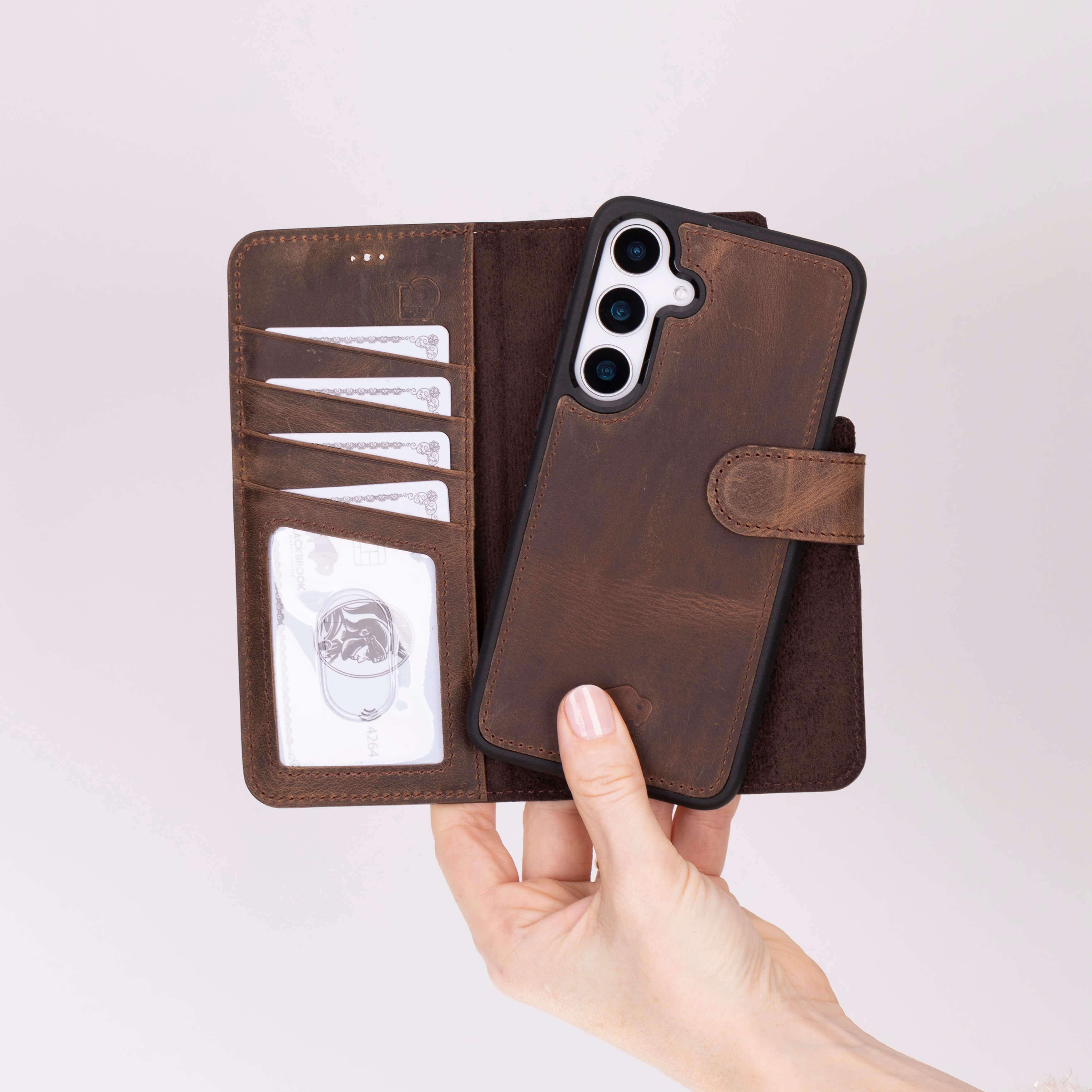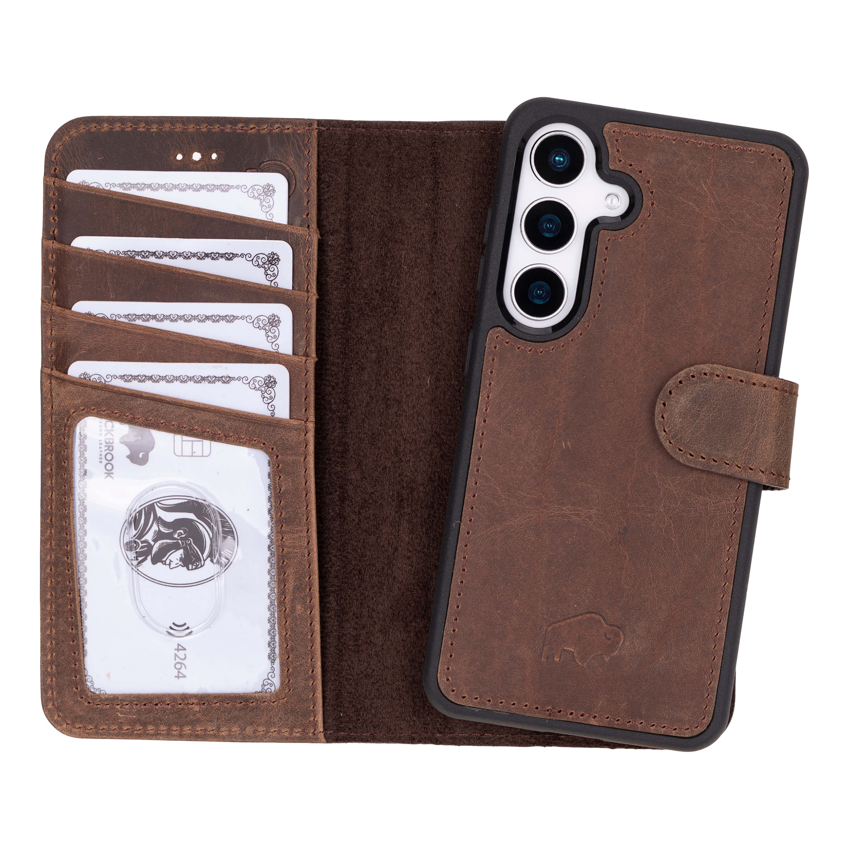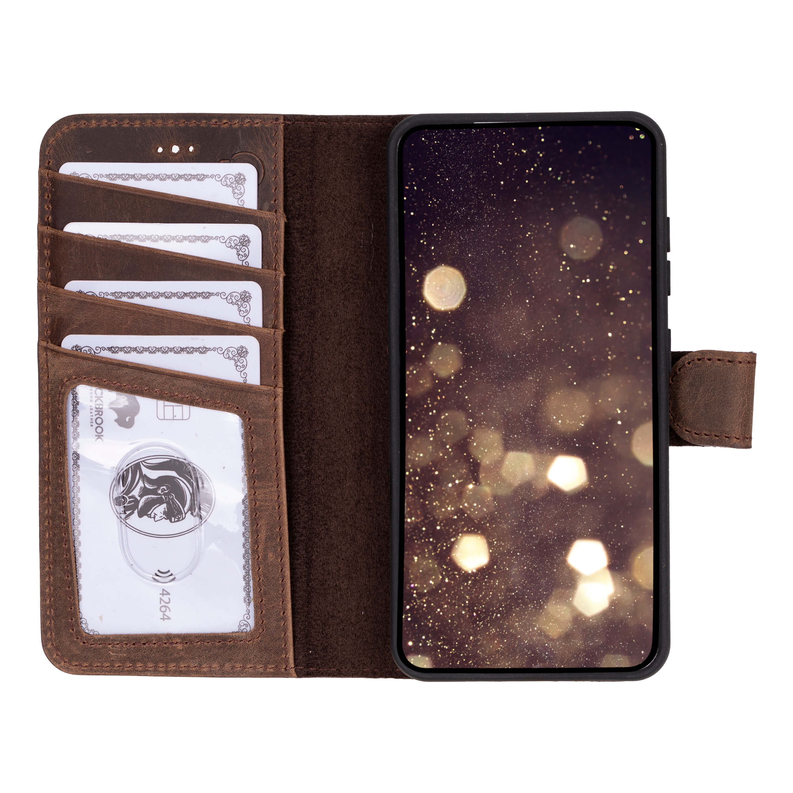 Stylish, 2-in-1 magnetic detachable wallet case. Full Grain Leather. Keeps essentials organized and protected.