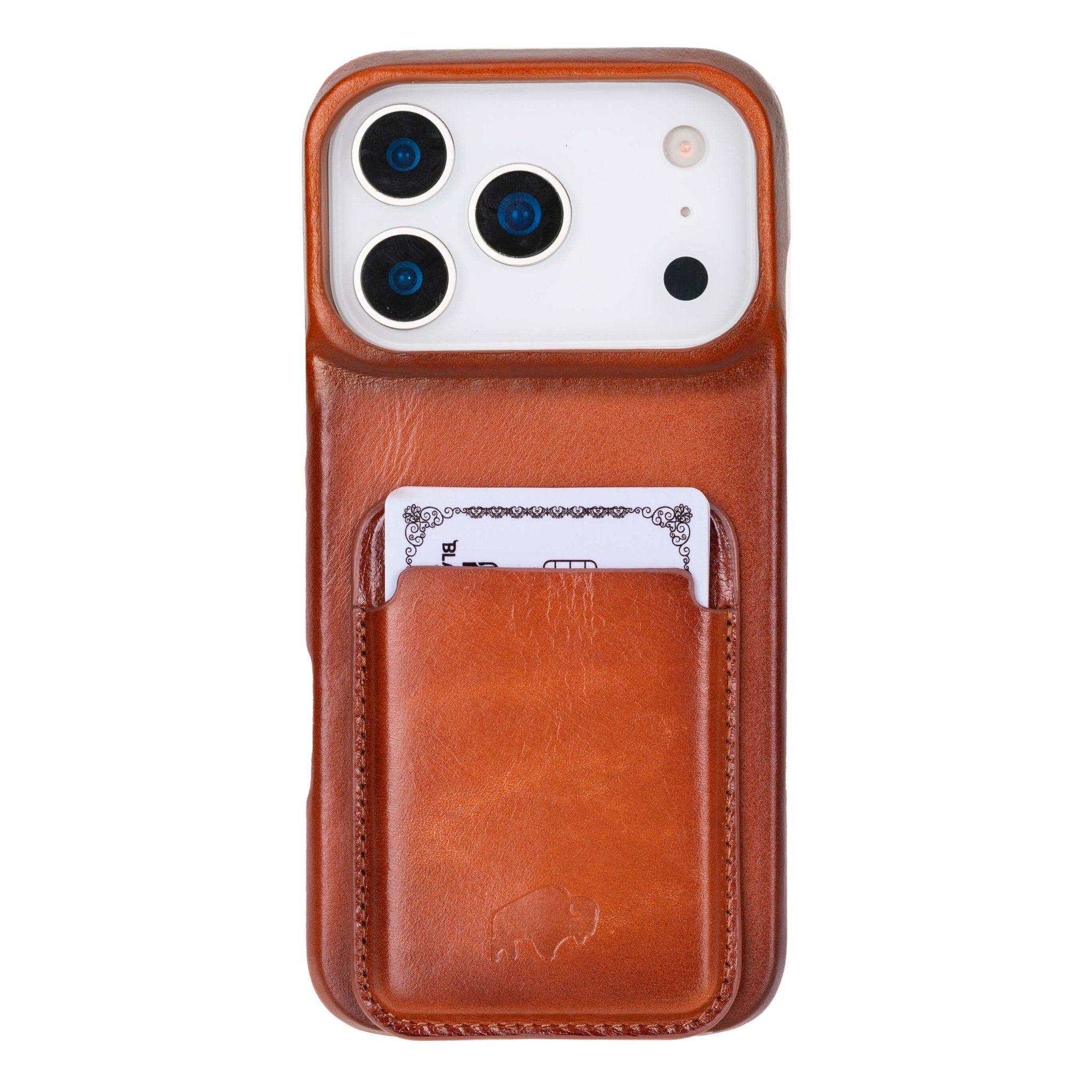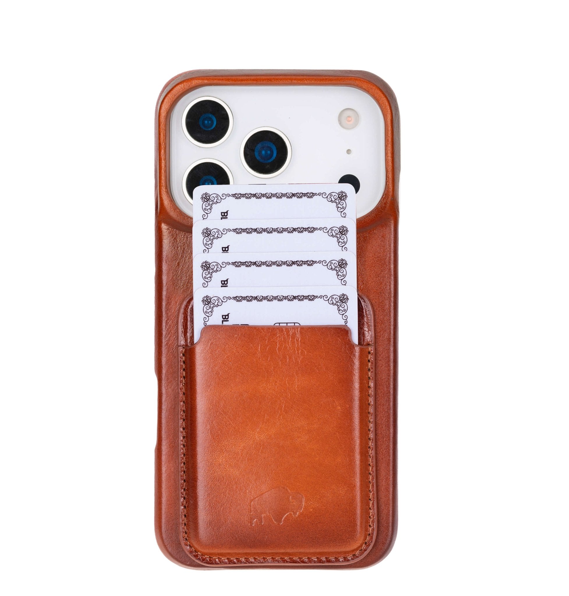 A slim leather wallet designed to snap seamlessly onto the back of your iPhone or any MagSafe-compatible BlackBrook case. It’s made from premium full-grain leather for a luxe feel and built-in magnets for a secure hold. Whether you're heading out with just the essentials or want quick access to your daily cards, this wallet keeps everything within easy reach—without added bulk.