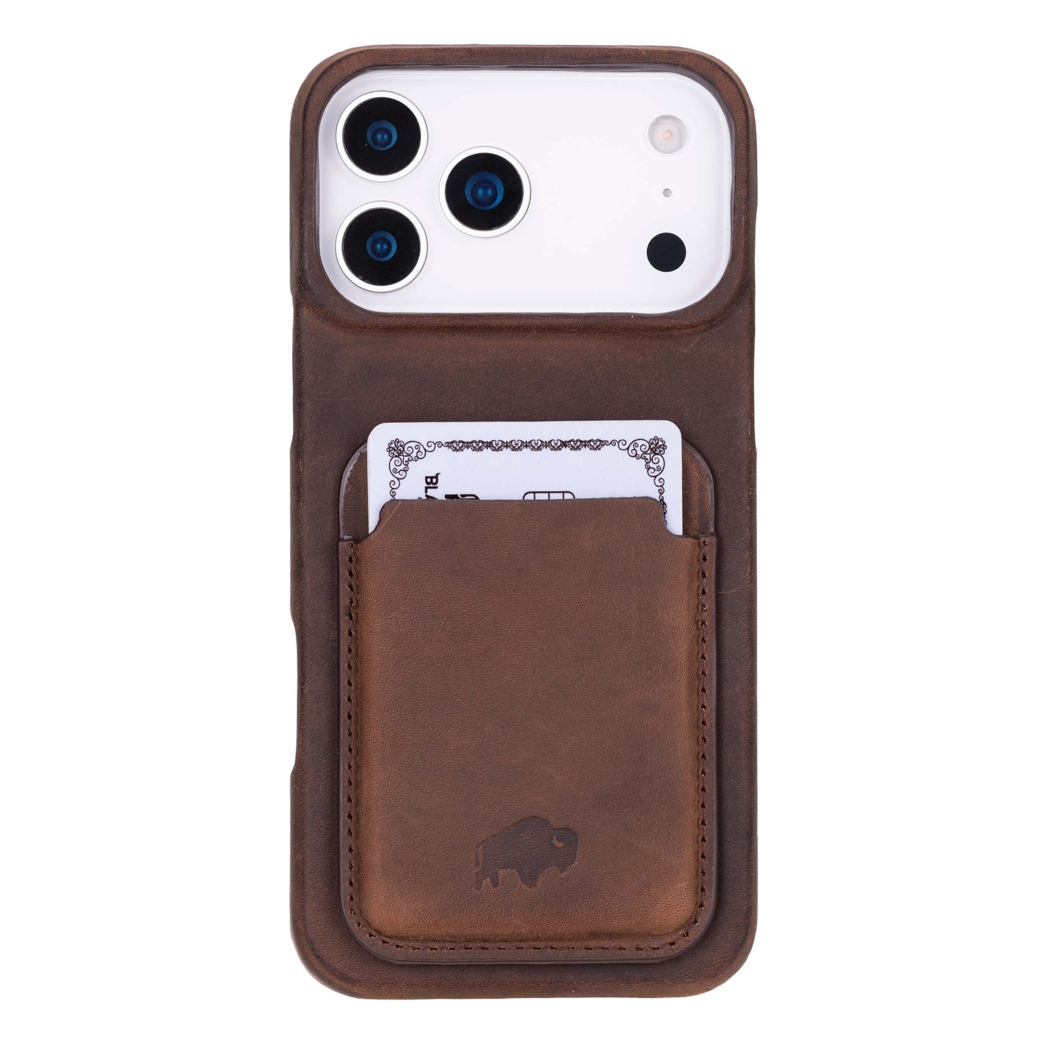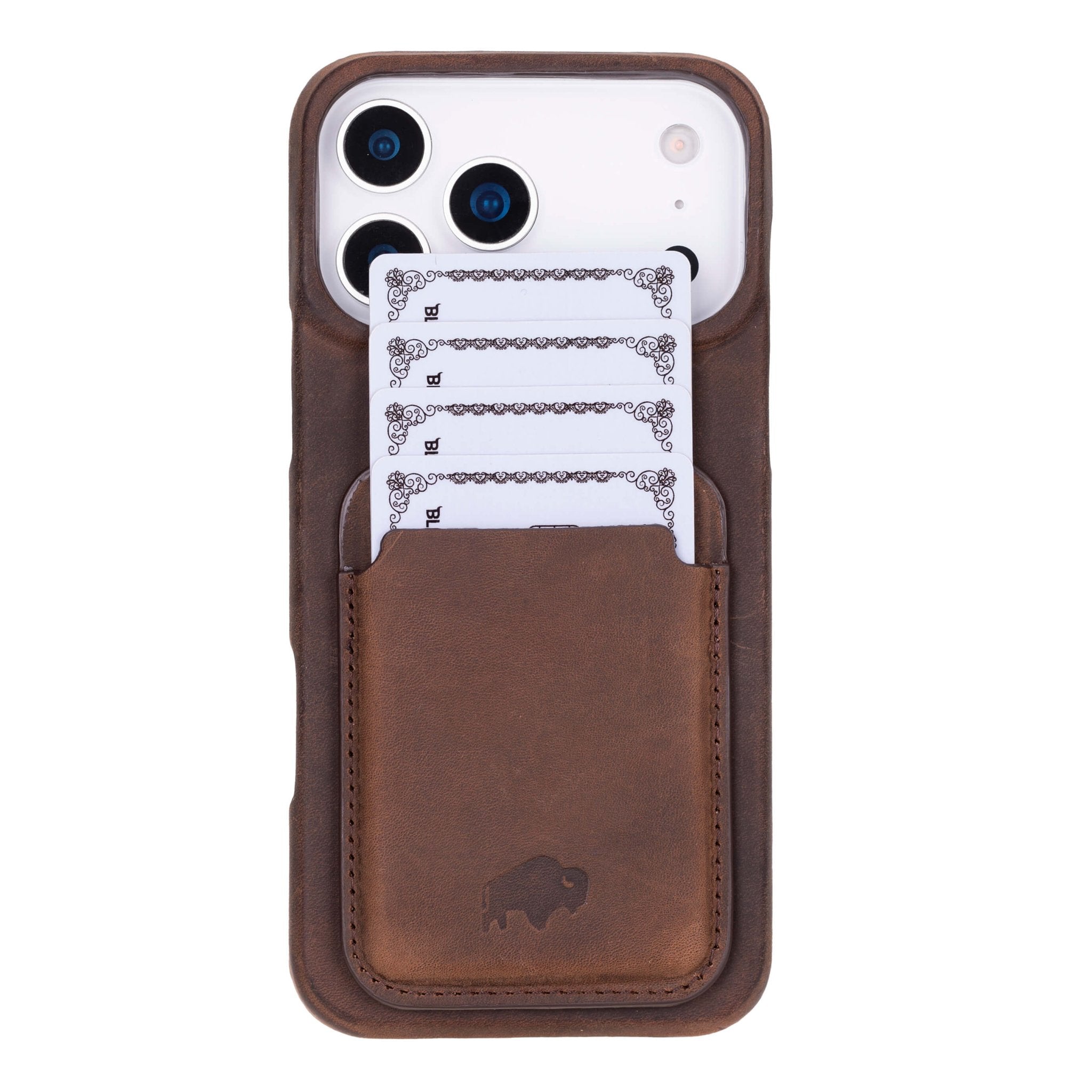 A slim leather wallet designed to snap seamlessly onto the back of your iPhone or any MagSafe-compatible BlackBrook case. It’s made from premium full-grain leather for a luxe feel and built-in magnets for a secure hold. Whether you're heading out with just the essentials or want quick access to your daily cards, this wallet keeps everything within easy reach—without added bulk.