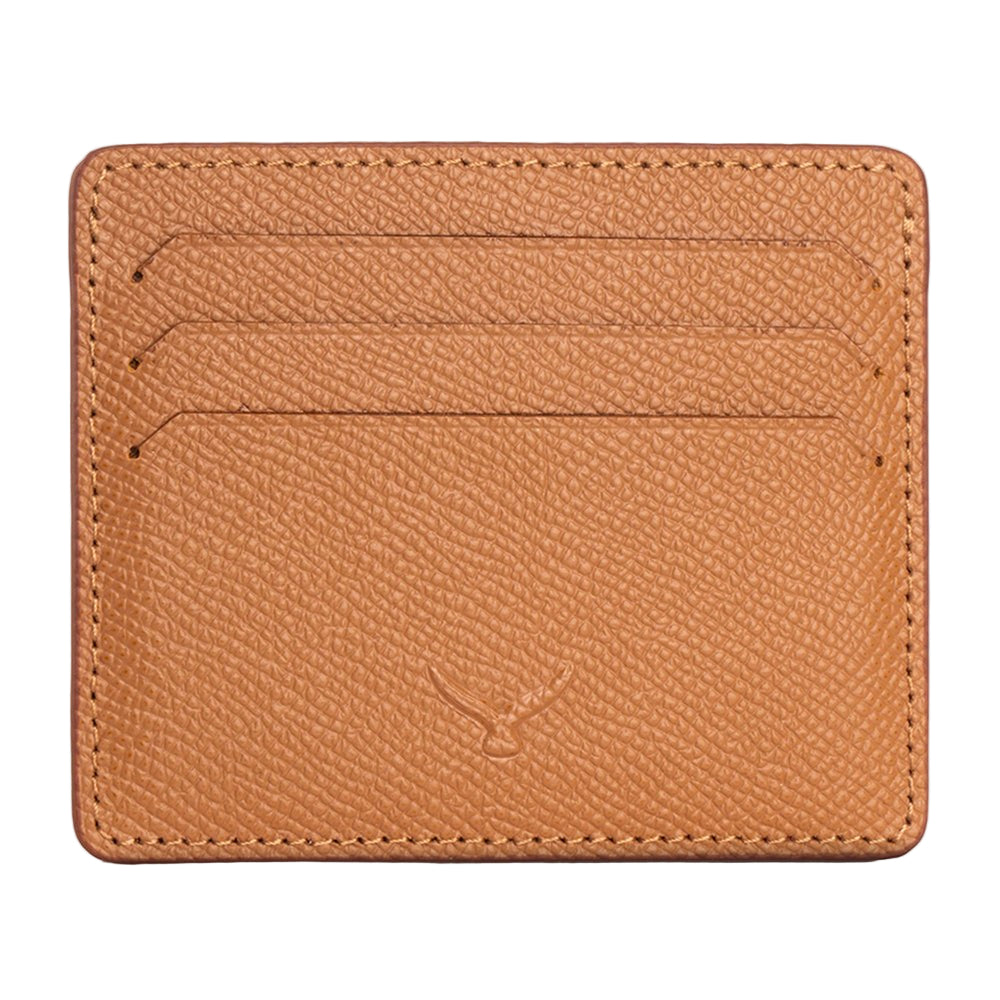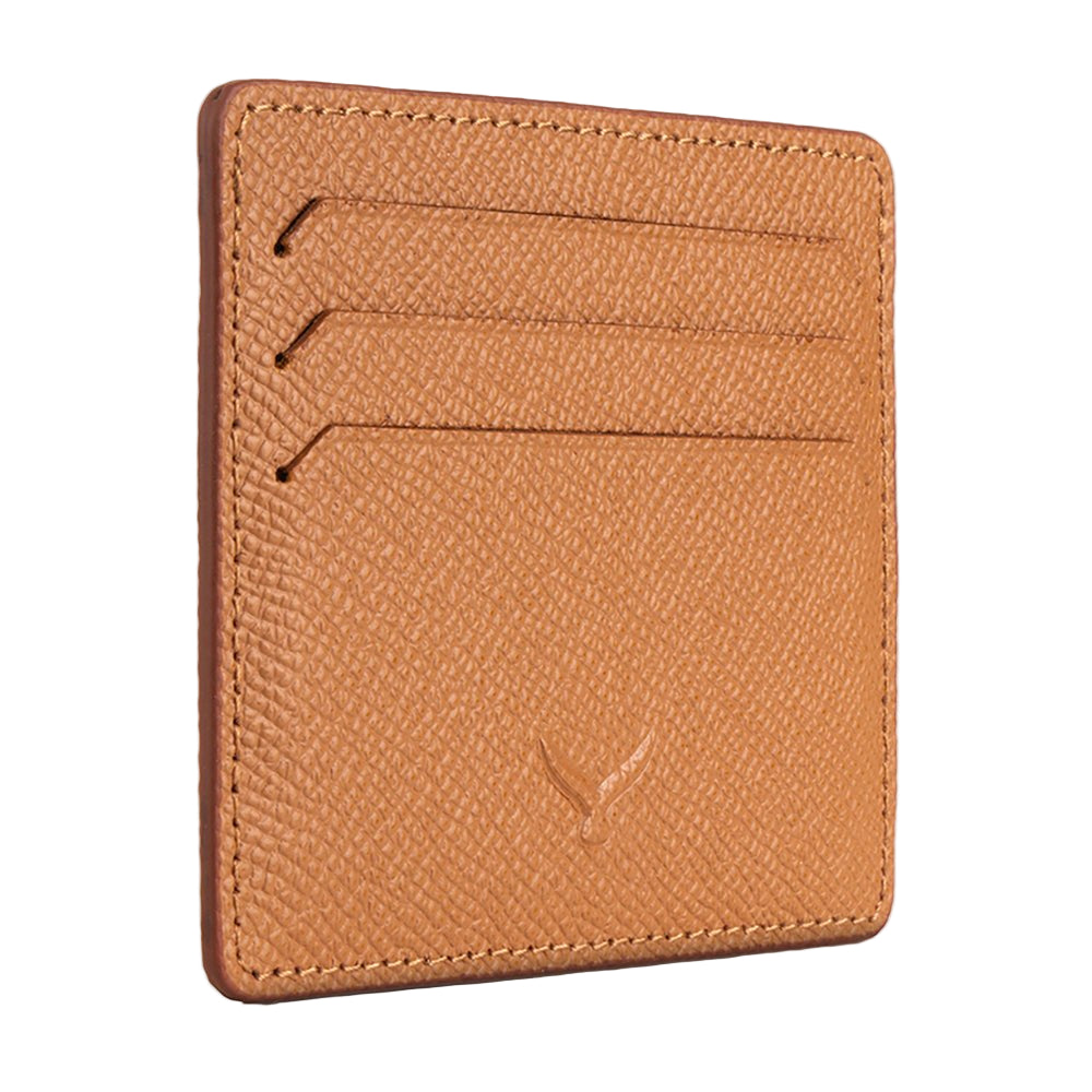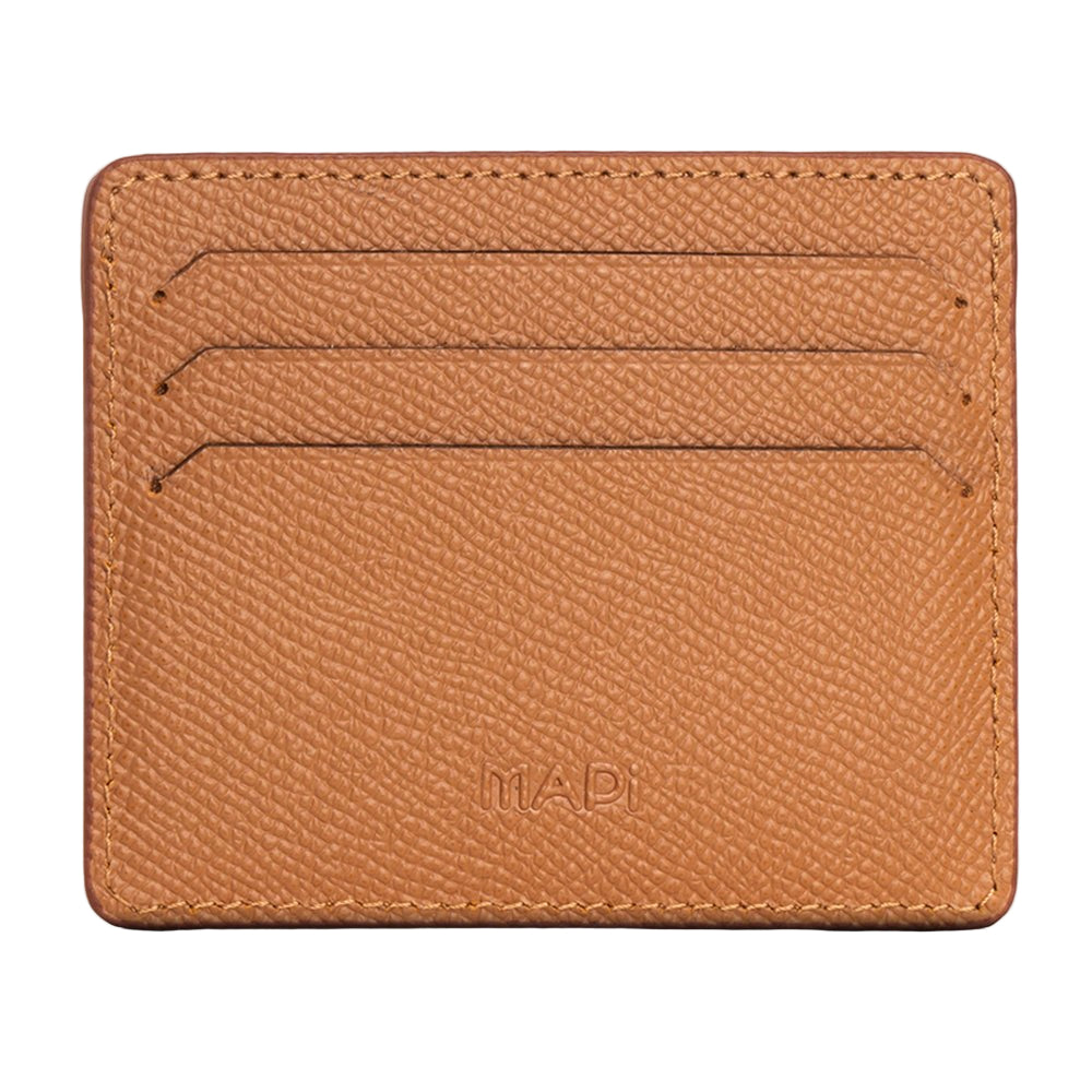 Hand-made slim leather card holder with four rounded slots and a bill compartment.