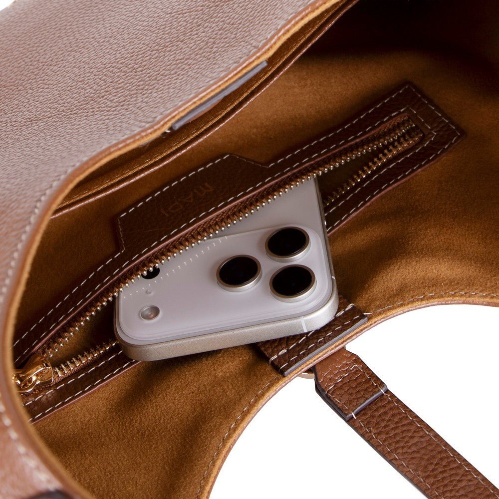 The Rosa Moon Bag is a genuine leather crescent shoulder bag with a minimalist gold-tone buckle, magnetic snap closure, and an inner zip pocket. Finished with a soft suede-like lining and an adjustable strap for everyday to dressy wear.