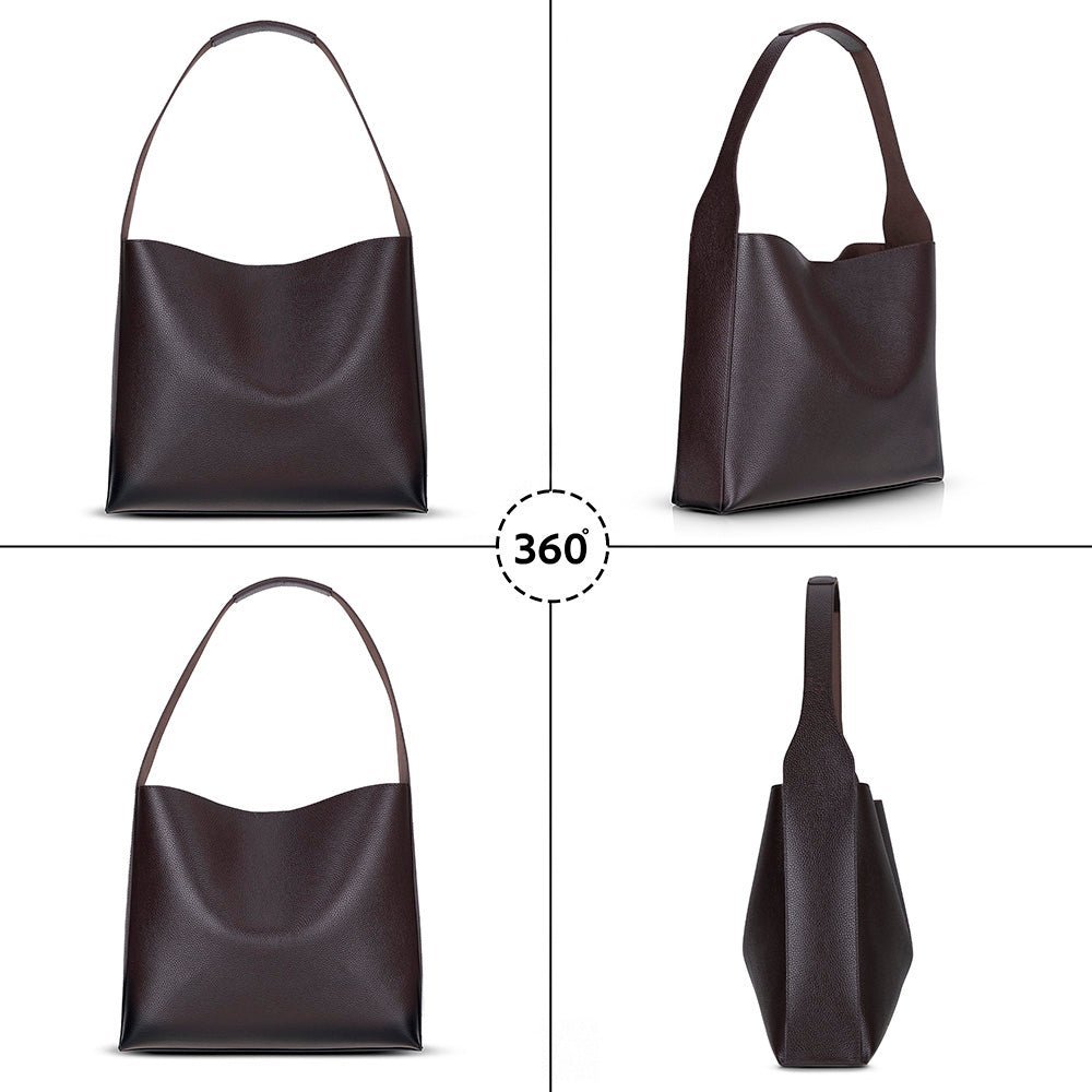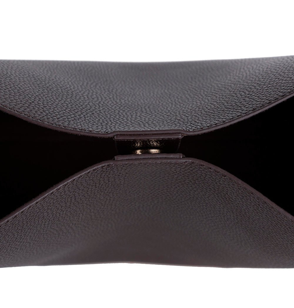A clean, minimalist tote handcrafted from 100% genuine leather with a wide shoulder strap and a roomy interior for daily essentials. The magnetic snap closure keeps everything secure, from office days to weekends.