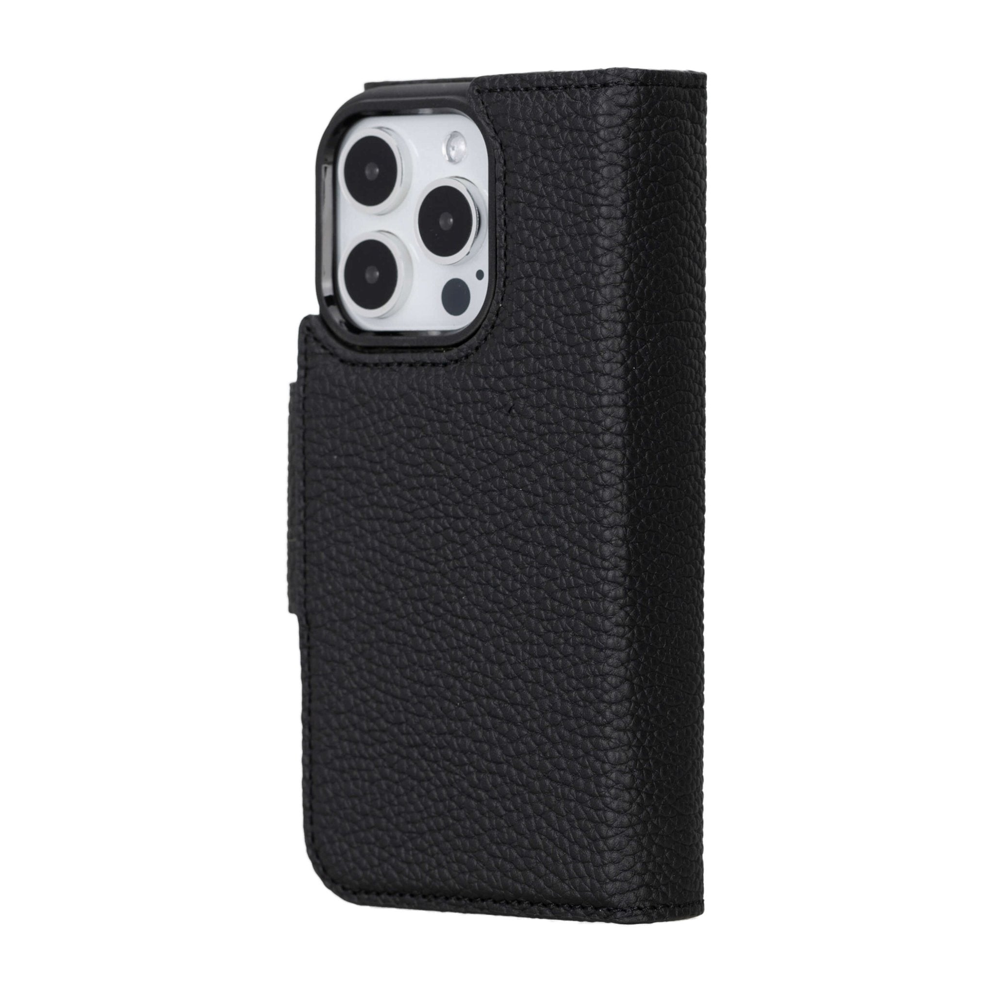 Organize your essentials with this Tri-Fold detachable leather wallet case for iPhone 15 Pro featuring eight card slots, RFID protection, and a secure snap-on magnetic inner case for daily convenience.